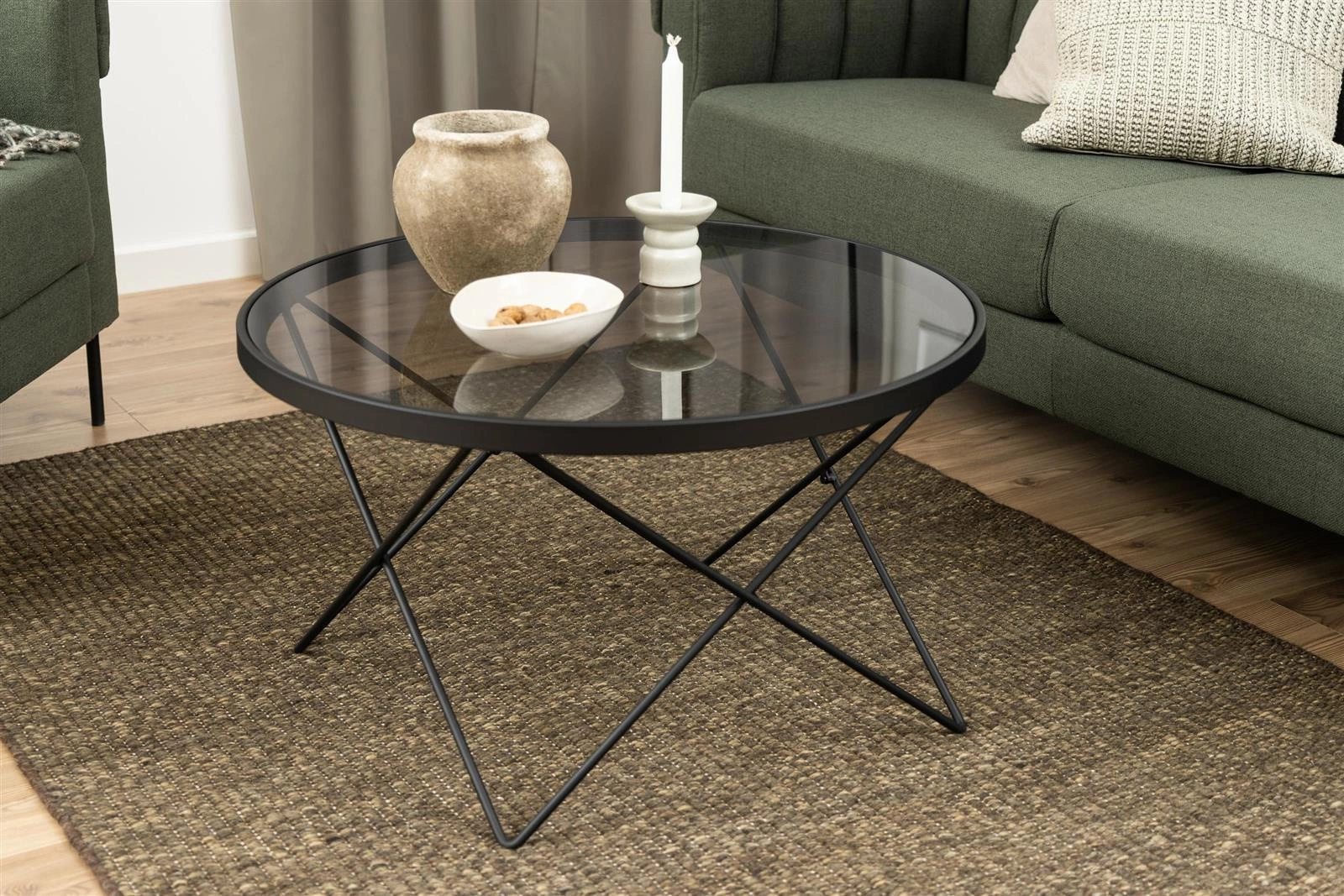 Uzyskaj nowoczesny wygląd swojego salonu dzięki stolikowi kawowemu Cuxton. Z blatem z hartowanego szkła i efektem dymionym, okrągły stolik kawowy jest uzupełniony smukłą czarną metalową podstawą.