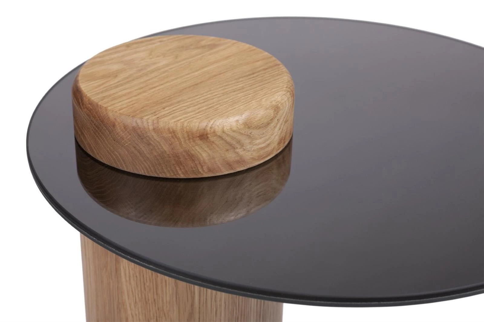 Stolik kawowy okrągły TYK 430 dębowy z lustrzanym blatem nowoczesny do salonu NORDIFRA