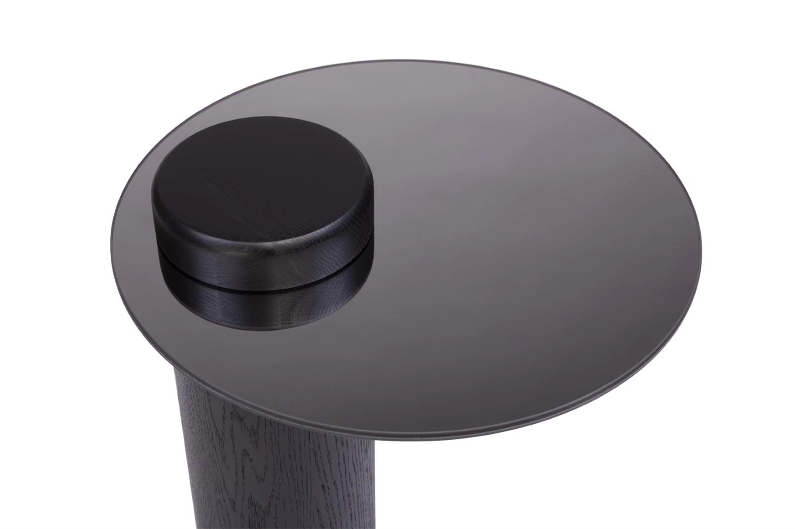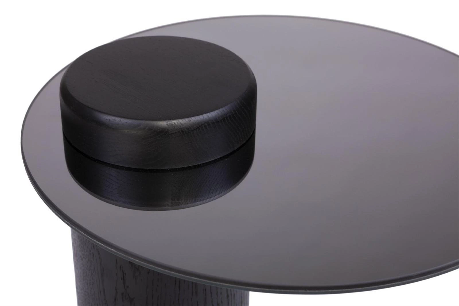 Stolik kawowy okrągły TYK 430 lustrzany blat czarny dębowy nowoczesny do salonu NORDIFRA