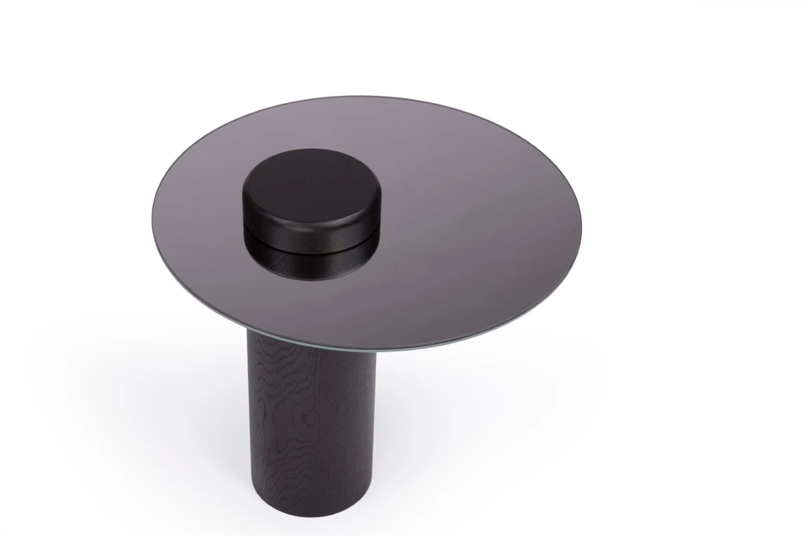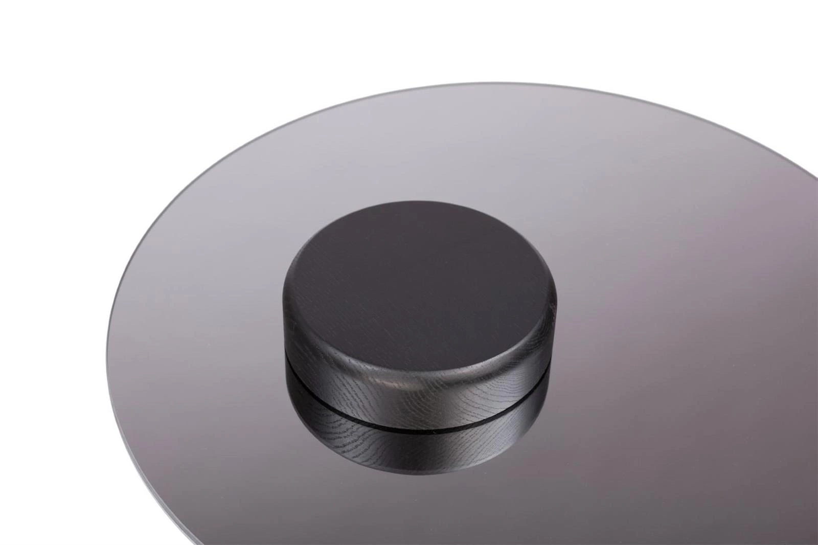 Stolik kawowy okrągły TYK 500 NORDIFRA do salonu nowoczesny dębowy z lustrem czarny 50 cm