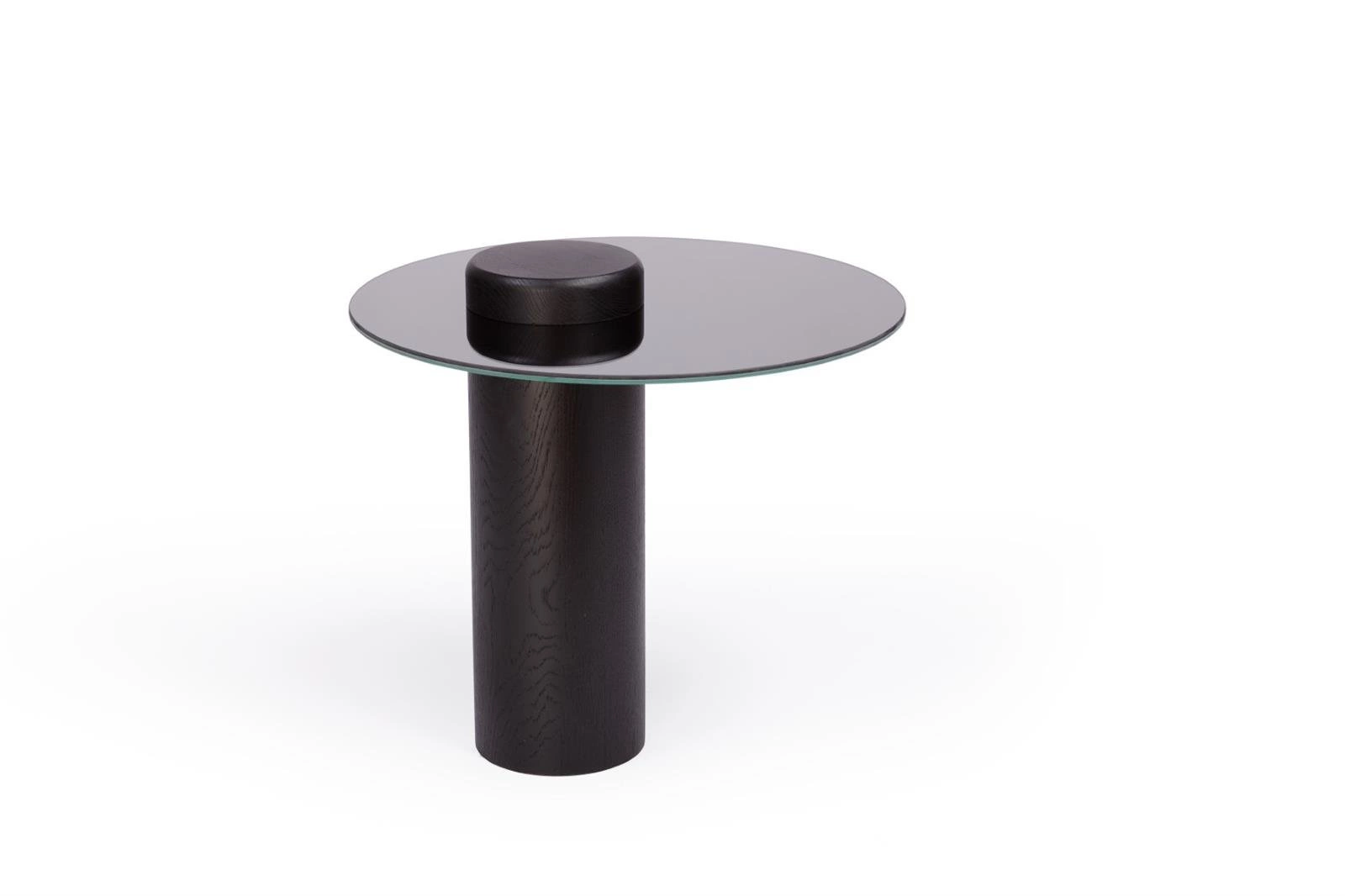 Kolekcja stolików TYK to niepowtarzalny design inspirowany energią natury. To odpowiedź na współczesne trendy związane z pojawieniem się naturalnych akcentów w indywidualistycznych aranżacjach przestrzeni. Konstrukcja stolika TYK to masywna podstawa wykonana z naturalnego litego dębu lub naturalnego litego dębu barwionego na czarno. Jedna drewniana noga prezentuje się bardzo minimalistycznie, tworząc zdyscyplinowany efekt estetyczny. Blat dostępny w dwóch wersjach (stalowa taca lub lustro w kolorze tytanowym) wygląda tak, jakby przenikał przez podstawę, uzyskując tym samym oryginalny rezultat charakterystyczny dla całej kolekcji TYK. Miejsce przenikania podstawy przez blat występuje pośrodku, z prawej lub lewej strony, zależnie od wybranego modelu, dzięki czemu możemy uzyskać niepowtarzalny zestaw, decydując się na zakup kilku różnych stolików TYK. Ich trzy różne wysokości idealnie współgrają ze sobą, a ustawione względem siebie modele mogą przypominać, rosnące swobodnie w lesie drzewa.