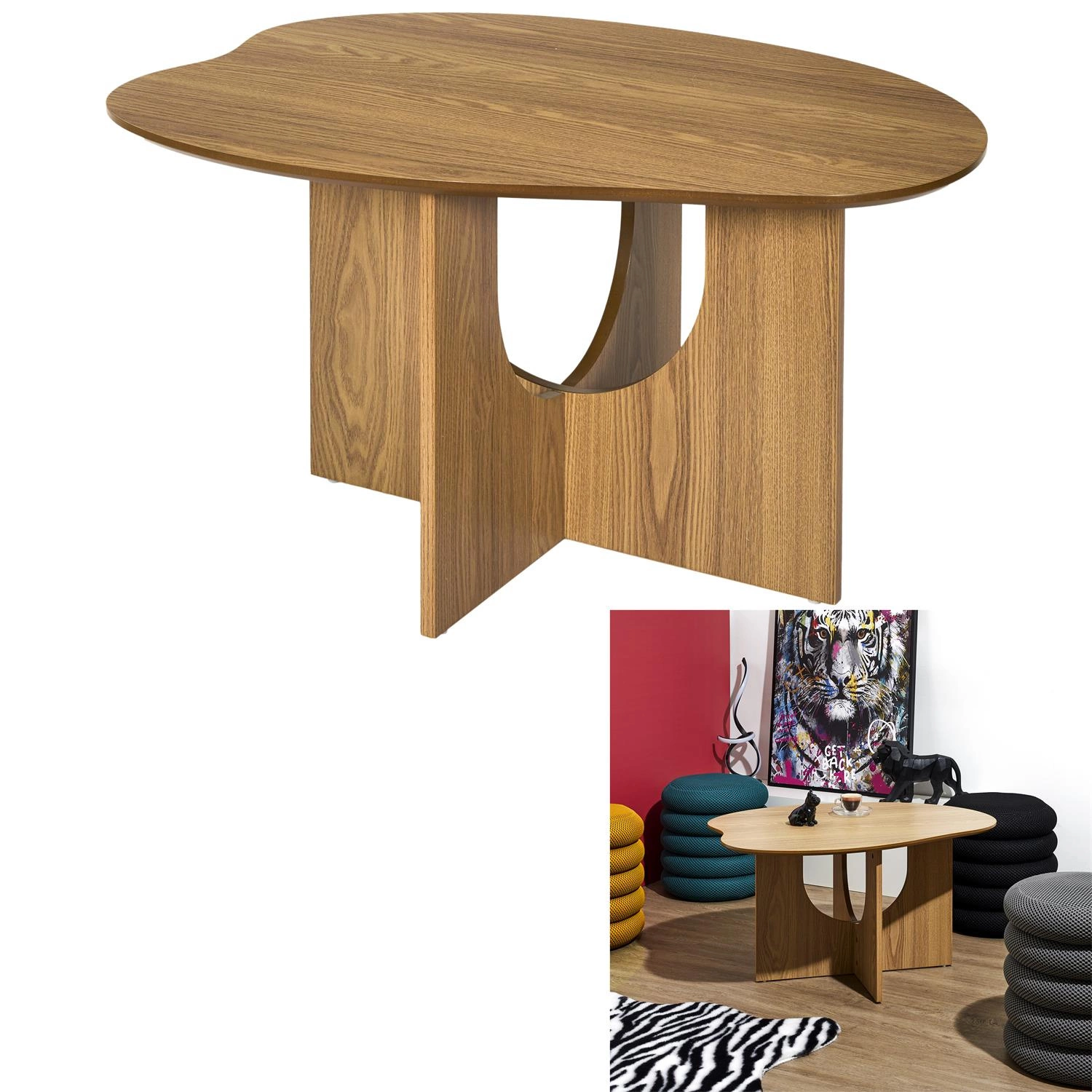 Stolik kawowy owalny Calypso Intesi 80x60 cm – nowoczesny drewniany akcent w stylu japandi