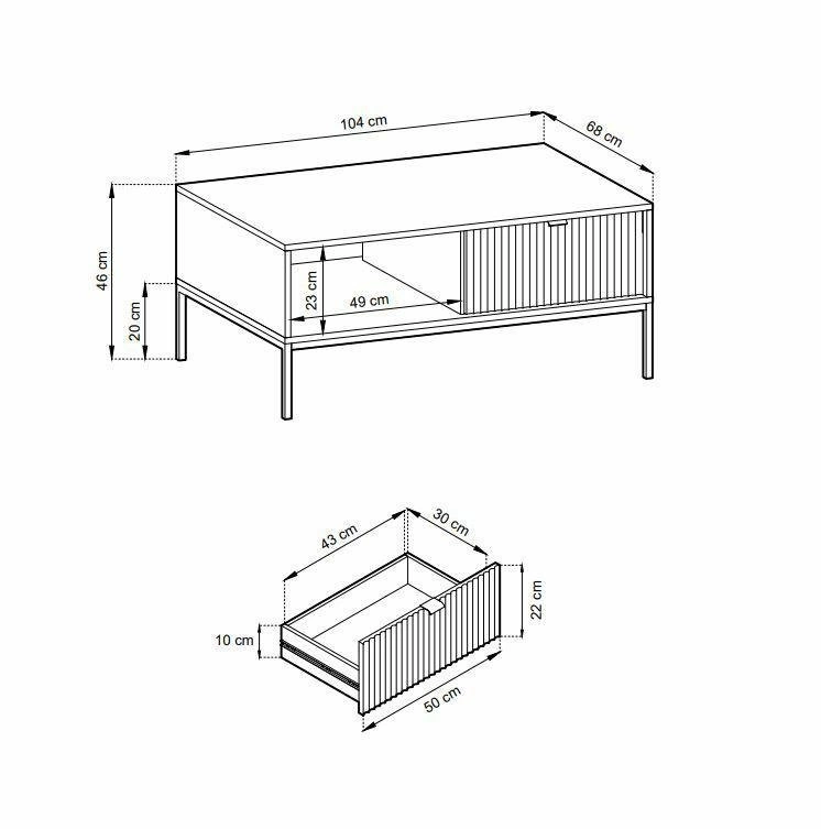 Stół Delicious Table to stylowy dodatek do każdego pomieszczenia. Nie tylko uzupełni on każdy wystrój wnętrza, ale także z pewnością przyciągnie uwagę gości. Unikalny, karbowany front szuflady jest wzmocniony elegancko wykonanym aluminiowym uchwytem, dzięki czemu stolik Delicious jest olśniewającym, wyróżniającym się elementem. Duży blat o szerokości 104 cm i głębokości 68 cm zapewnia mnóstwo miejsca na rozmowy przy kawie z przyjaciółmi lub rozłożenie książek i innych materiałów do czytania. Co więcej, cienkie metalowe nogi sprawiają, że stolik jest lekki, zapewniając jednocześnie doskonałą stabilność dzięki solidnej konstrukcji. Stolik Delicious ma wszystko - zarówno szykowny wygląd, jak i praktyczne zastosowanie - więc kup go już dziś i przygotuj się na niezapomniane wrażenia!