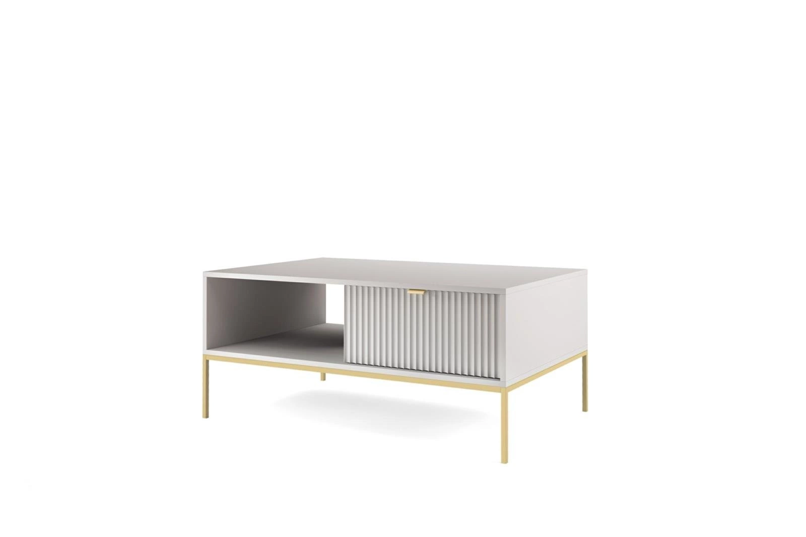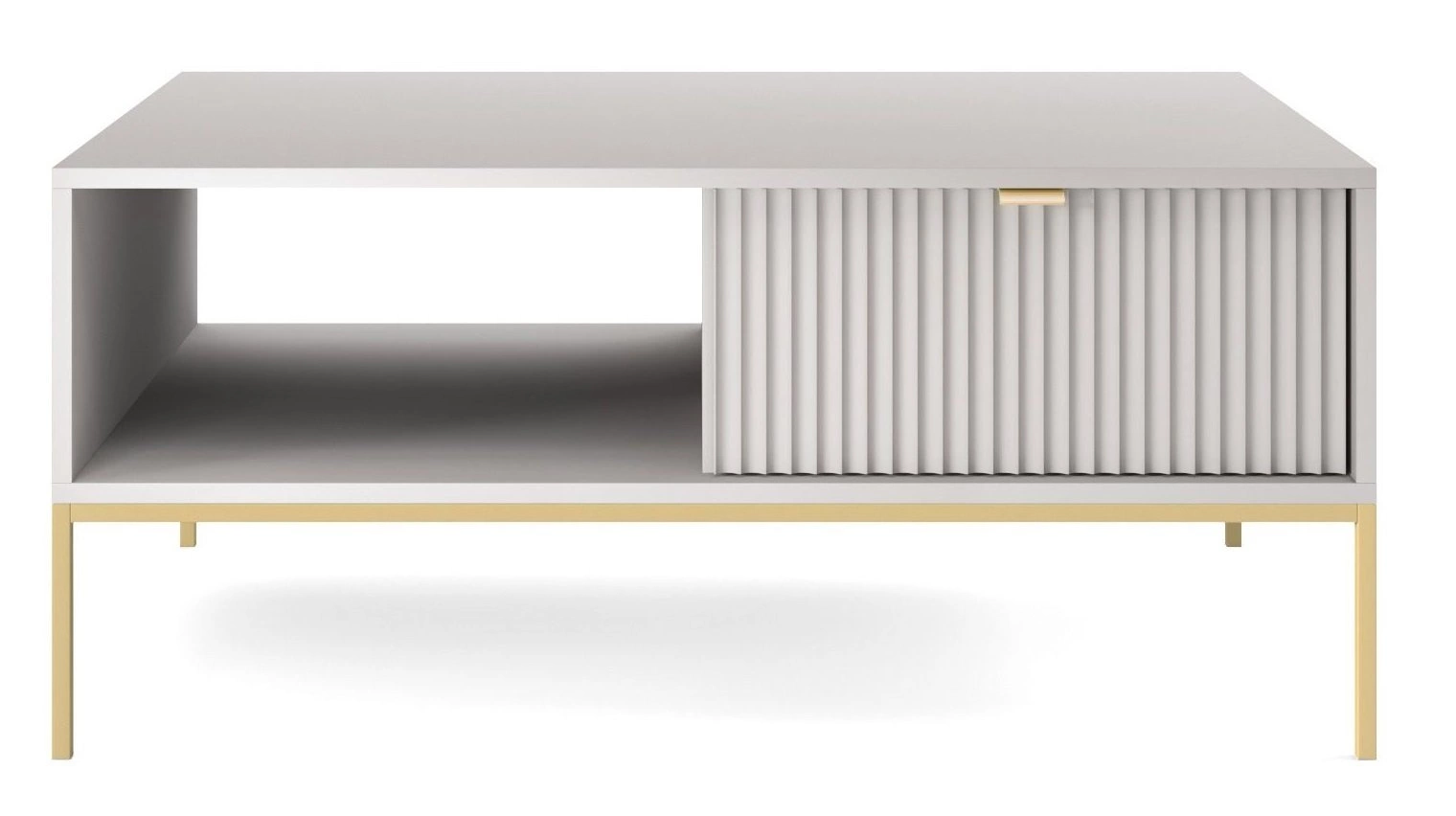 Stolik Delicious z ryflowanym frontem szuflady wzbogaci Twoje wnętrze w nowoczesnym stylu. Aluminiowy uchwyt w złotym kolorze i pojemne wymiary sprawiają, że jest idealny do organizacji twojej przestrzeni od podstawek pod kawę, ładowarek do telefonów lub książek. Dodatkowo, metalowe nogi zapewniają stabilność tego stylowego mebla. Bądź kreatywny i dodaj stylu do każdego pomieszczenia z pysznym stolikiem Intesi już dziś!