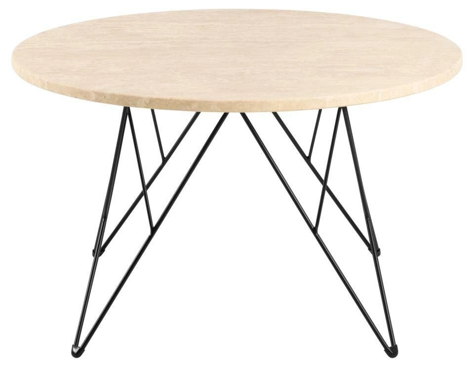 ]=Stolik kawowy Prunus 80 cm trawertyn/czarny to wyjątkowy element wyposażenia wnętrz, który łączy elegancję naturalnego kamienia z nowoczesnym designem. Okrągły blat wykonany jest z lakierowanego trawertynu o matowej, beżowej powierzchni, co nadaje mu delikatny, ale wyrazisty wygląd. Trawertyn, jako naturalny kamień, wprowadza do wnętrza ciepło i organiczny charakter, a jednocześnie jest trwały i łatwy w pielęgnacji dzięki lakierowanemu wykończeniu.