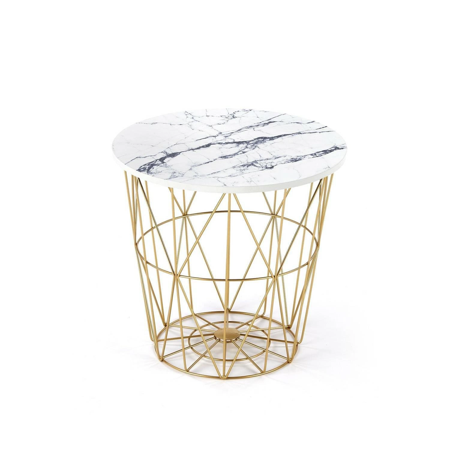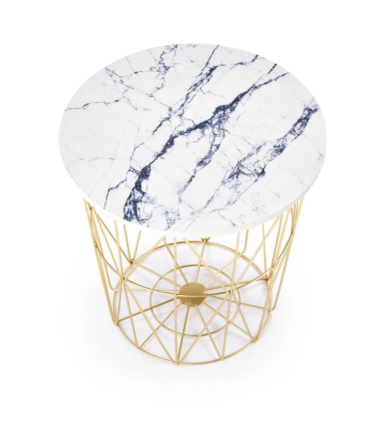 Przygotuj swój salon na sukces ze stolikiem kawowym Rissa! Piękny mebel ma elegancki skandynawski design, idealny do stworzenia nowoczesnego loftowego klimatu w Twoim domu. Stolik kawowy jest zbudowany z solidnej metalowej ramy, która zapewnia mu stabilność i wytrzymałość, a blat z forniru MDF doskonale podkreśla jego wygląd. Jego blat wykonany jest w kolorze białego marmuru, tworząc przyciągający wzrok kontrast ze złotą ramą, która przyciąga uwagę każdego gościa. 42-centymetrowa średnica zapewnia dużo miejsca na blacie na dekoracje, książki lub przekąski - a okrągła konstrukcja zapewnia, że nie ma ostrych narożników, które mogłyby przeszkadzać w zabawnych rozmowach na kanapie. 41-centymetrowa wysokość pasuje wygodnie prawie wszędzie bez uszczerbku dla stylu. Wykonany z myślą zarówno o funkcjonalności, jak i modzie - dodaj teraz i ulepsz swoją przestrzeń już dziś!