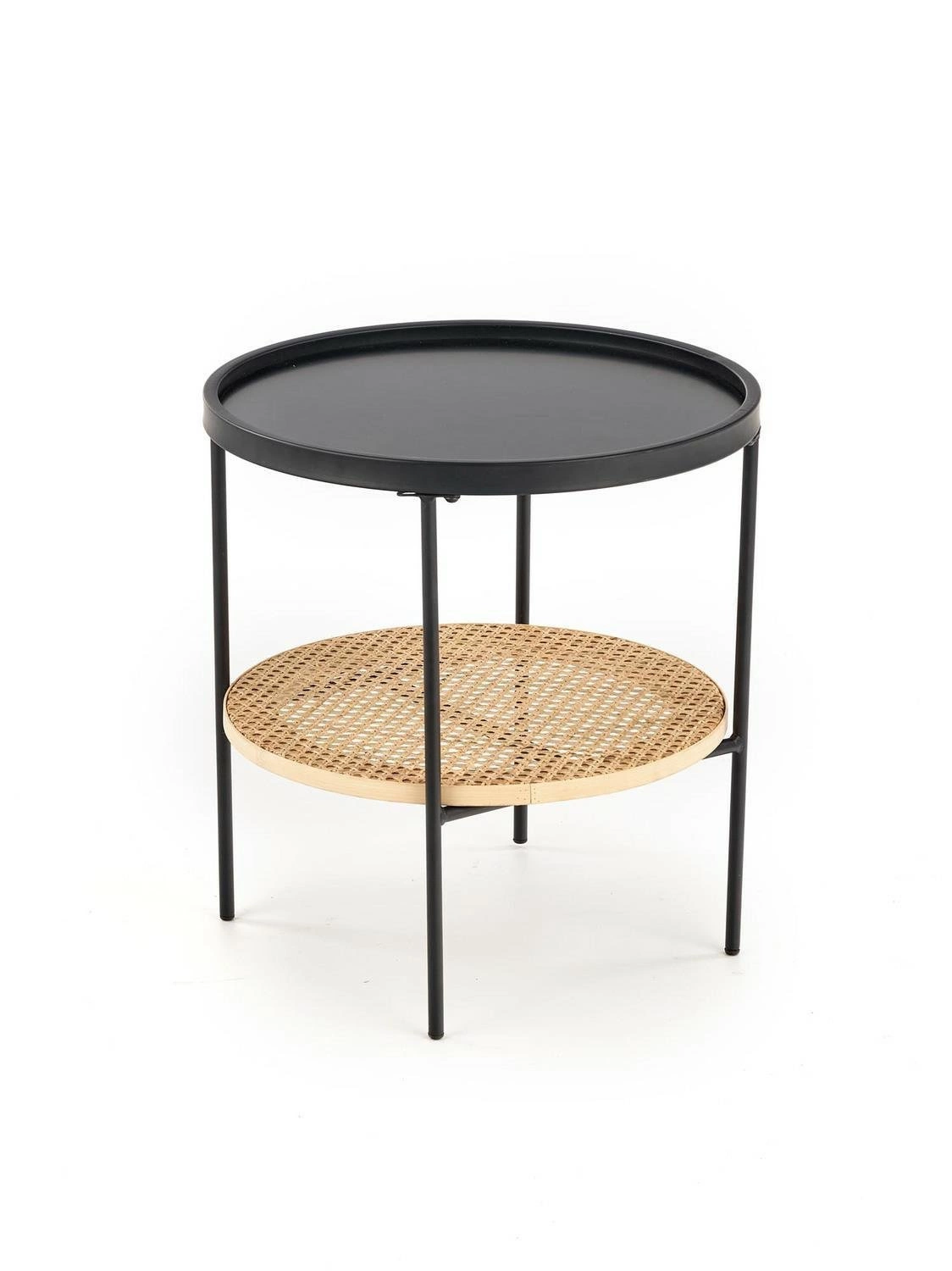 Stolik kawowy Safakis to mały, pomocniczy mebel, który świetnie sprawdzi się jako dodatek do salonu przy kąciku wypoczynkowym lub w poczekalni. Jego kompaktowe wymiary (45/45 cm) sprawiają, że doskonale wpasowuje się w niewielkie przestrzenie, oferując praktyczne miejsce do postawienia napoju, książki czy czasopisma. Dodatkowo, jego naturalny kolor w połączeniu z czernią stanowi uniwersalne zestawienie barw, które pasuje do różnych stylów wnętrz.