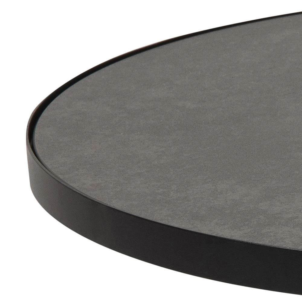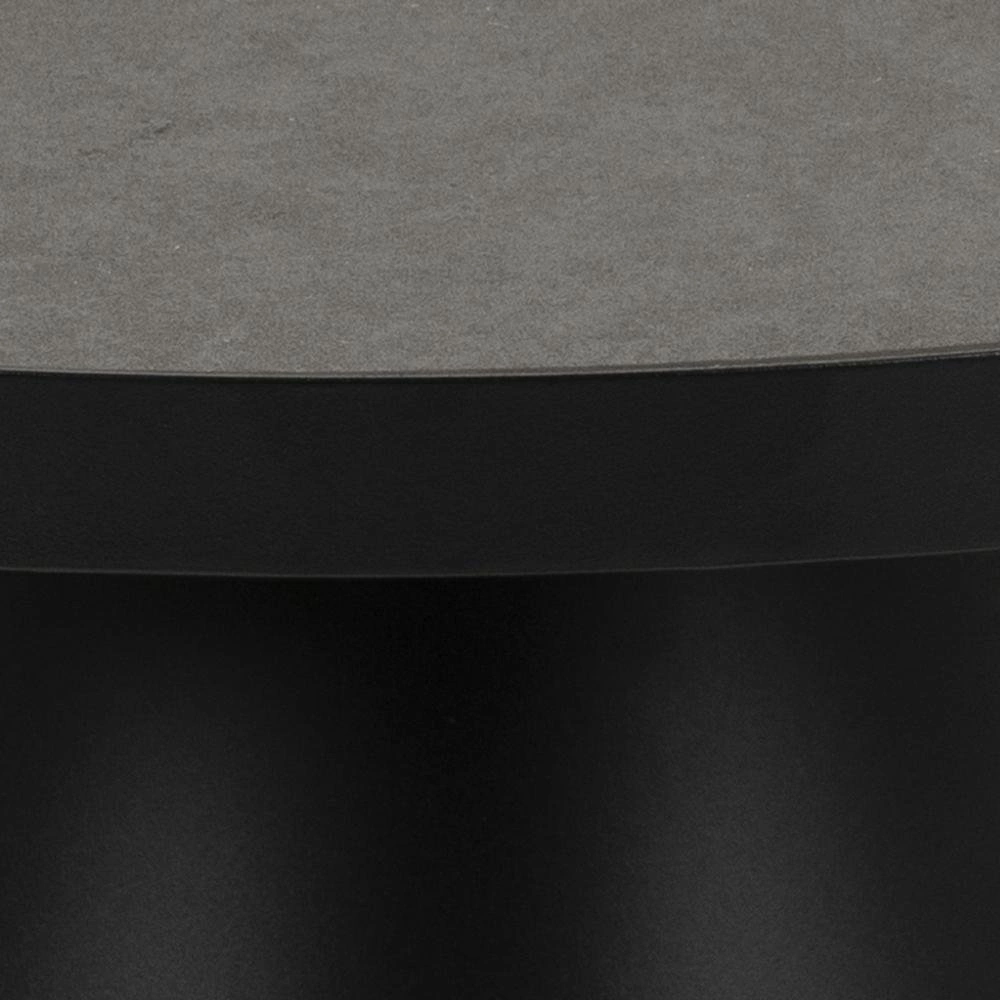 Stolik kawowy Soli to wzornictwo w stylu Art deco. Efektowny i geometryczny kształt stolika sprawdzi się nawet w niewielkim salonie. Okrągły blat został wykonany z ceramiki oraz szkła w kolorze szarym, a opiera się na czarnej rozszerzającej się podstawie o matowym wykończeniu. Dzięki temu mamy pewność, że jest to wytrzymały stolik kawowy, który posłuży nam długie lata.