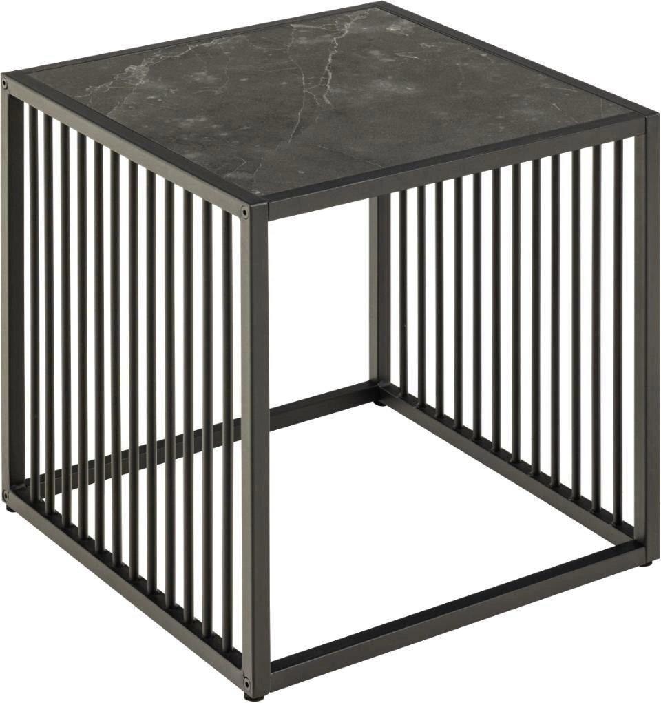 Podstawa stolika z drucianej stali malowanej proszkowo w matowym czarnym kolorze nie tylko zapewnia stabilność, ale również dodaje nowoczesnego charakteru meblowi. Pionowe metalowe listwy po bokach podkreślają unikalny design, a całość tworzy harmonijną kompozycję, która przyciąga wzrok. Oprócz estetyki, stolik jest również praktyczny – jego wymiary 40x40 cm sprawiają, że idealnie sprawdzi się w małych przestrzeniach, będąc wygodnym miejscem na napoje, książki czy dekoracje.
