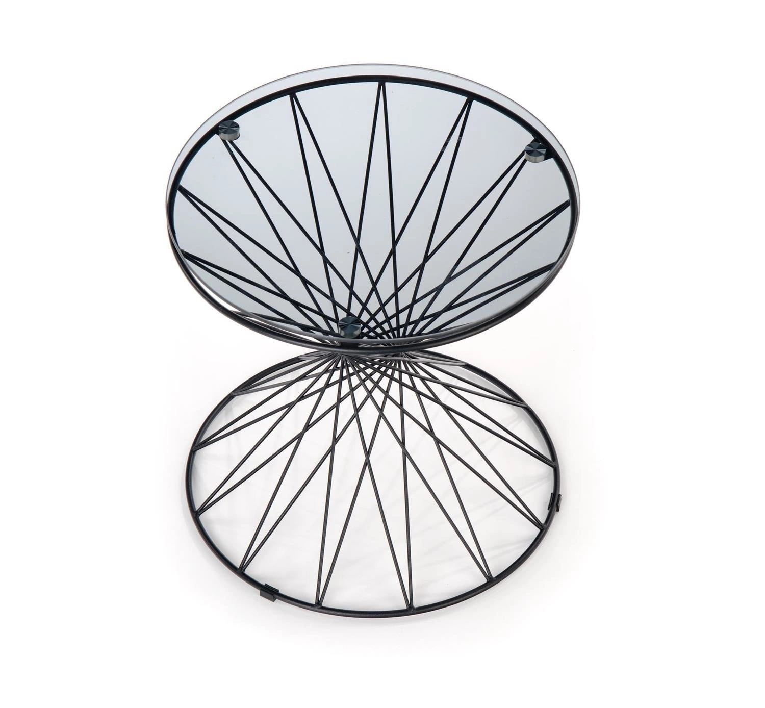 Przezroczysty blat szklany i metalowy stelaż w kolorze czarnym tworzą elegancki i minimalistyczny wygląd, który łatwo dopasujesz do różnych aranżacji wnętrz. Blat o kształcie okrągłym doda harmonii i delikatności, a jego dymiony kolor nadaje mu unikalnego charakteru.Ten stolik kawowy nie tylko będzie ozdobą Twojego salonu, ale również praktycznym meblem. Jego szerokość 50 cm zapewnia wystarczającą przestrzeń na ulubione książki, kubki z kawą czy dekoracyjne elementy.