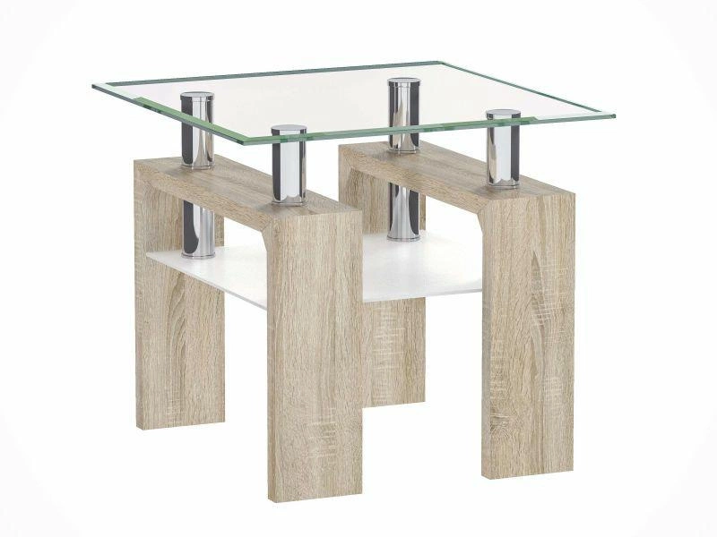 Stolik kawowy szklany kwadratowy Darby 60x60 cm z półką nowoczesny do salonu Intesi