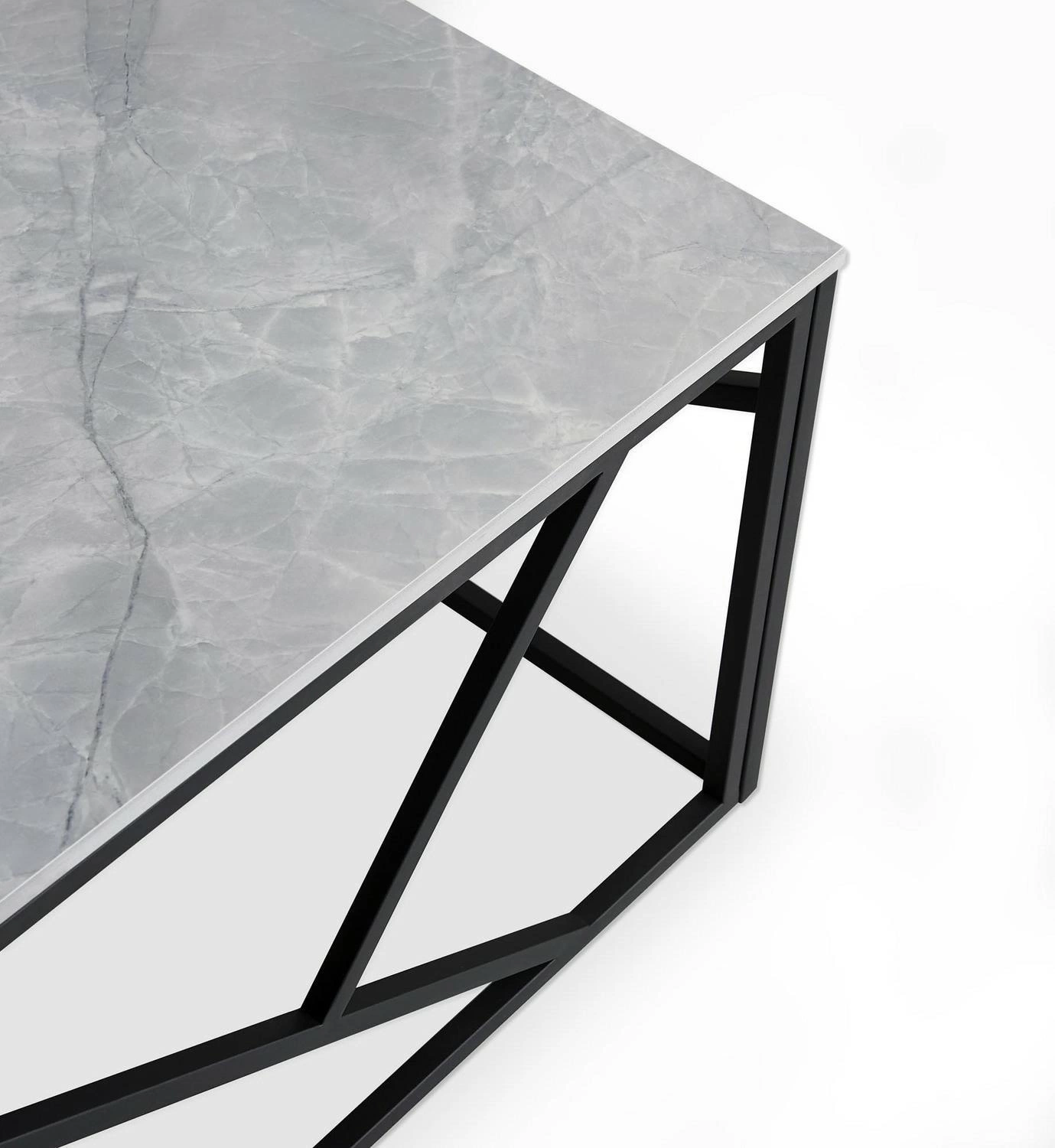 Podkręć swój wystrój ze stolikiem kawowym Taman od Intesi. Nowoczesny i efektowny mebel ma połyskujące marmurowe wykończenie, blat wykonany ze spieku i podstawę ze stali malowanej proszkowo.
