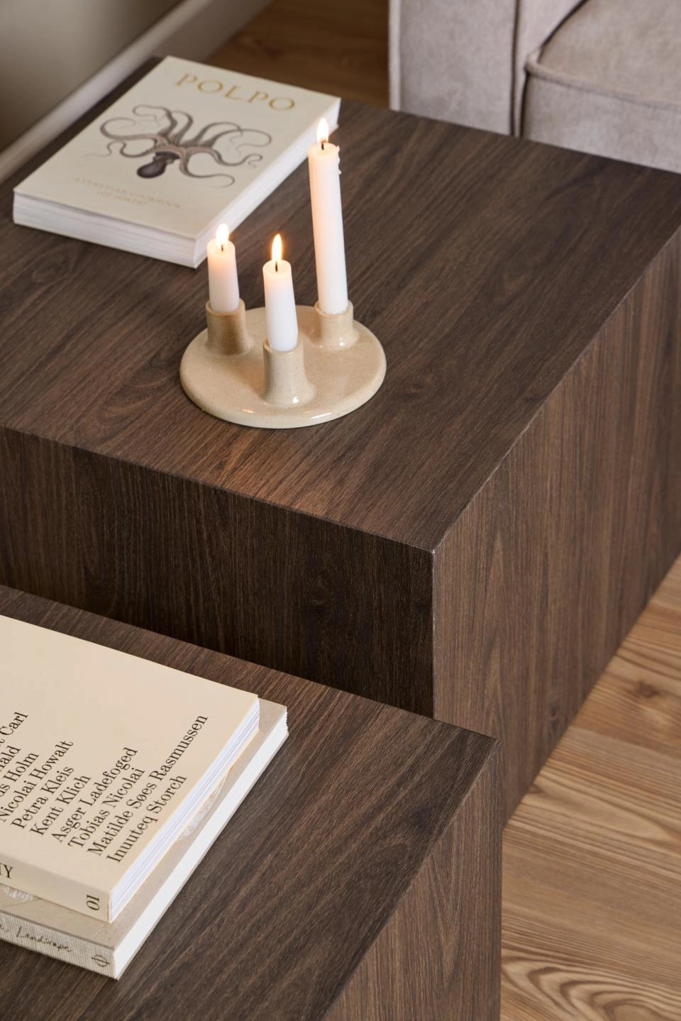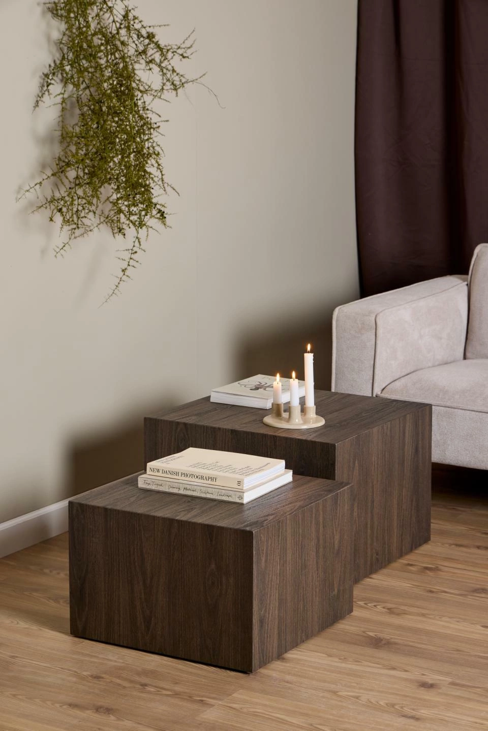 Przedstawiamy elegancki zestaw dwóch stolików kawowych Dice w kolorze dymionego jesionu od renomowanej marki Actona. Wykonane z laminowanej płyty meblowej, stoliki mają formę sześcianów o różnych rozmiarach (58x58x40;50x50x33), co dodaje im unikalnego charakteru. Ich naturalny, ciemny kolor sprawia, że będą doskonale komponować się z różnymi stylami wnętrz - od holenderskiego, przez loftowy, minimalistyczny, aż po nowoczesny.