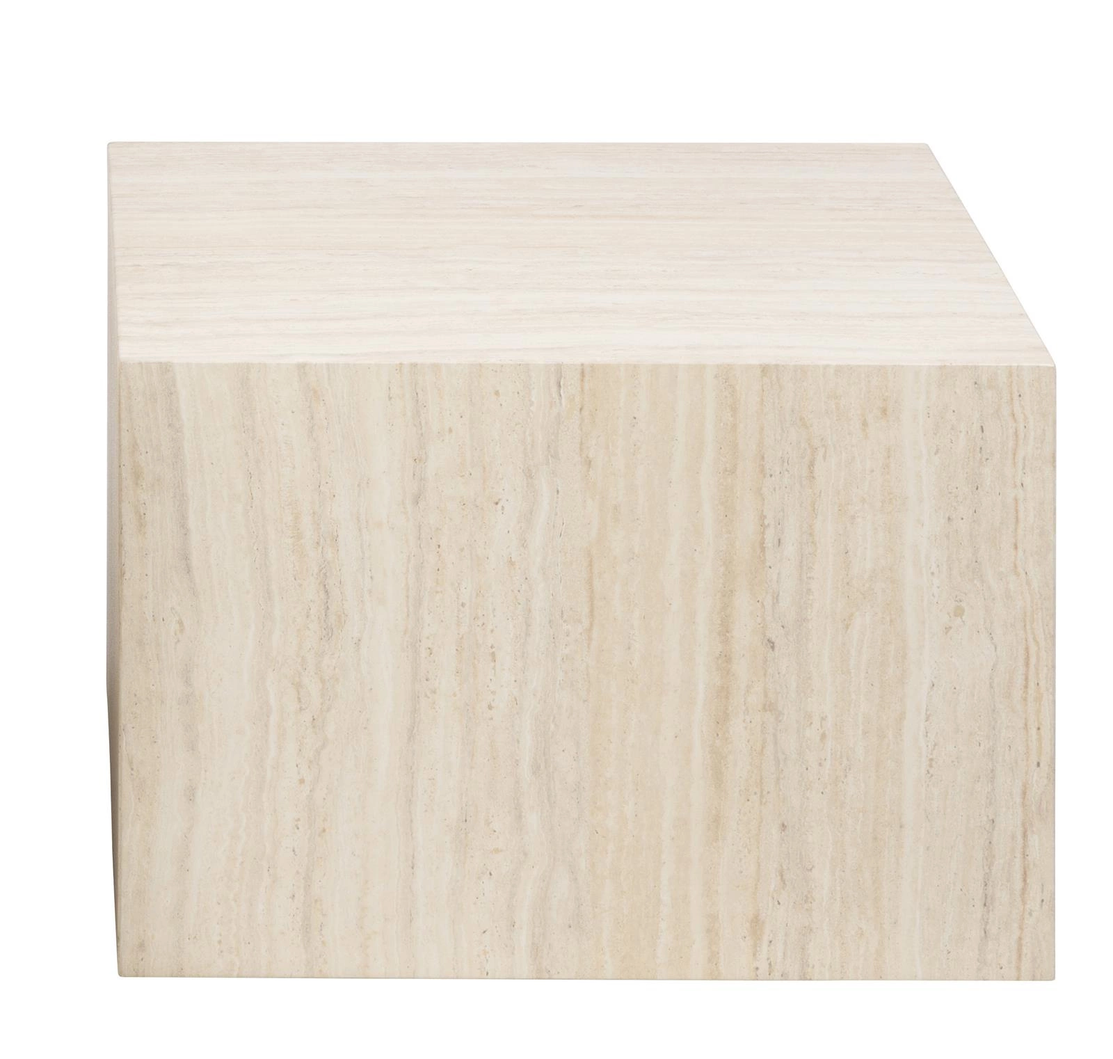 Bądź odważny i kreatywny dzięki temu zestawowi dwóch stolików kawowych! Prostopadłościenne stoliki są wykonane z płyt MDF pokrytych laminatem imitującym beżowy trawertyn, nadając im elegancki, a jednocześnie nowoczesny wygląd. Idealne do salonu, sypialni lub przedpokoju.