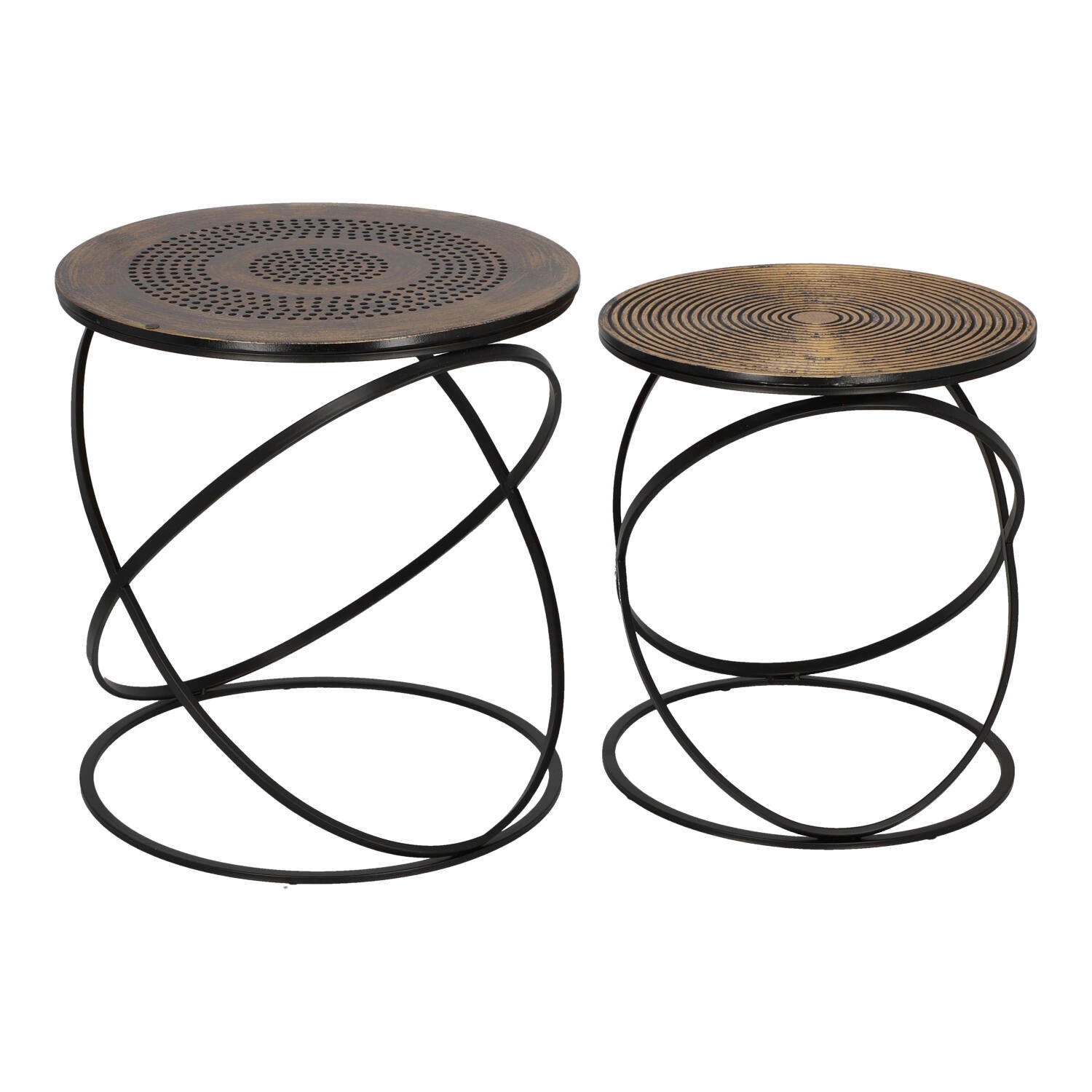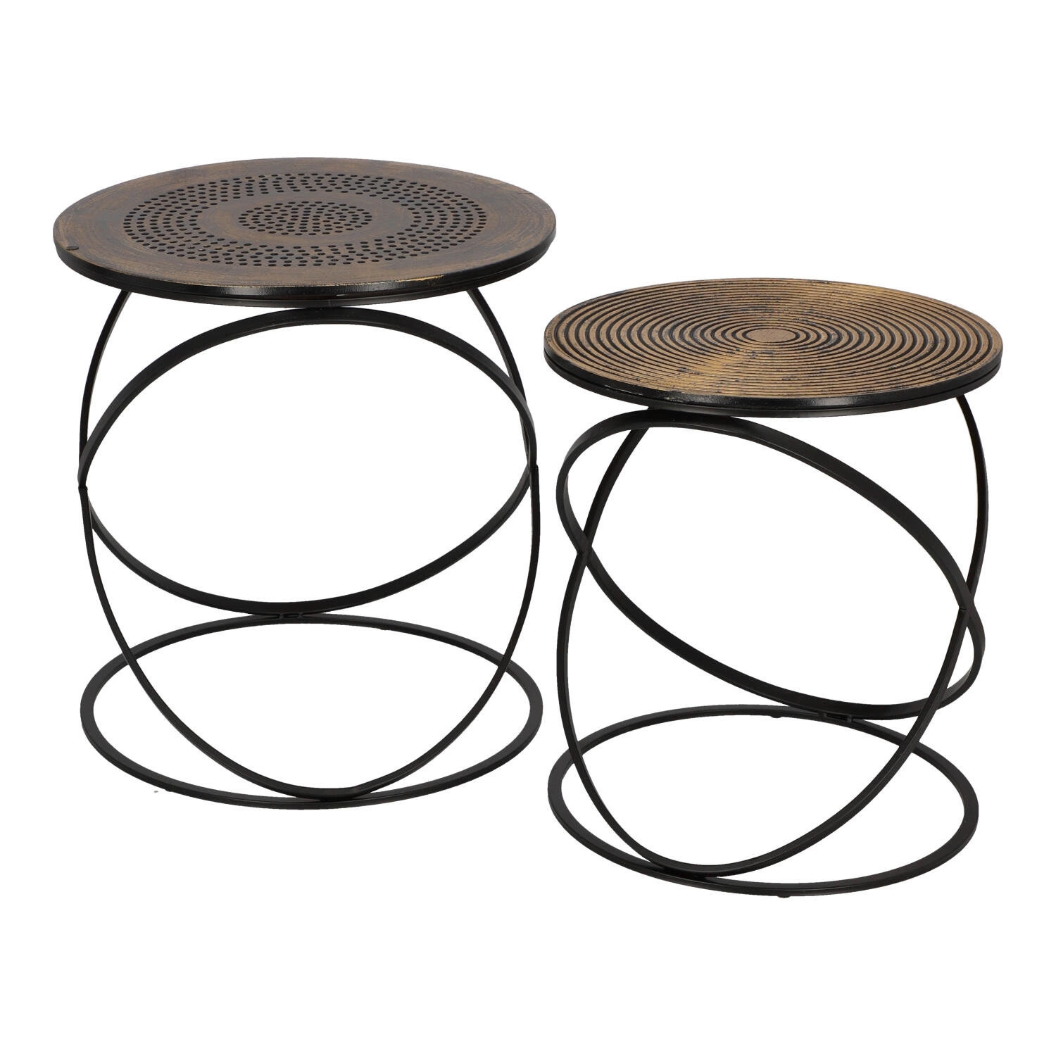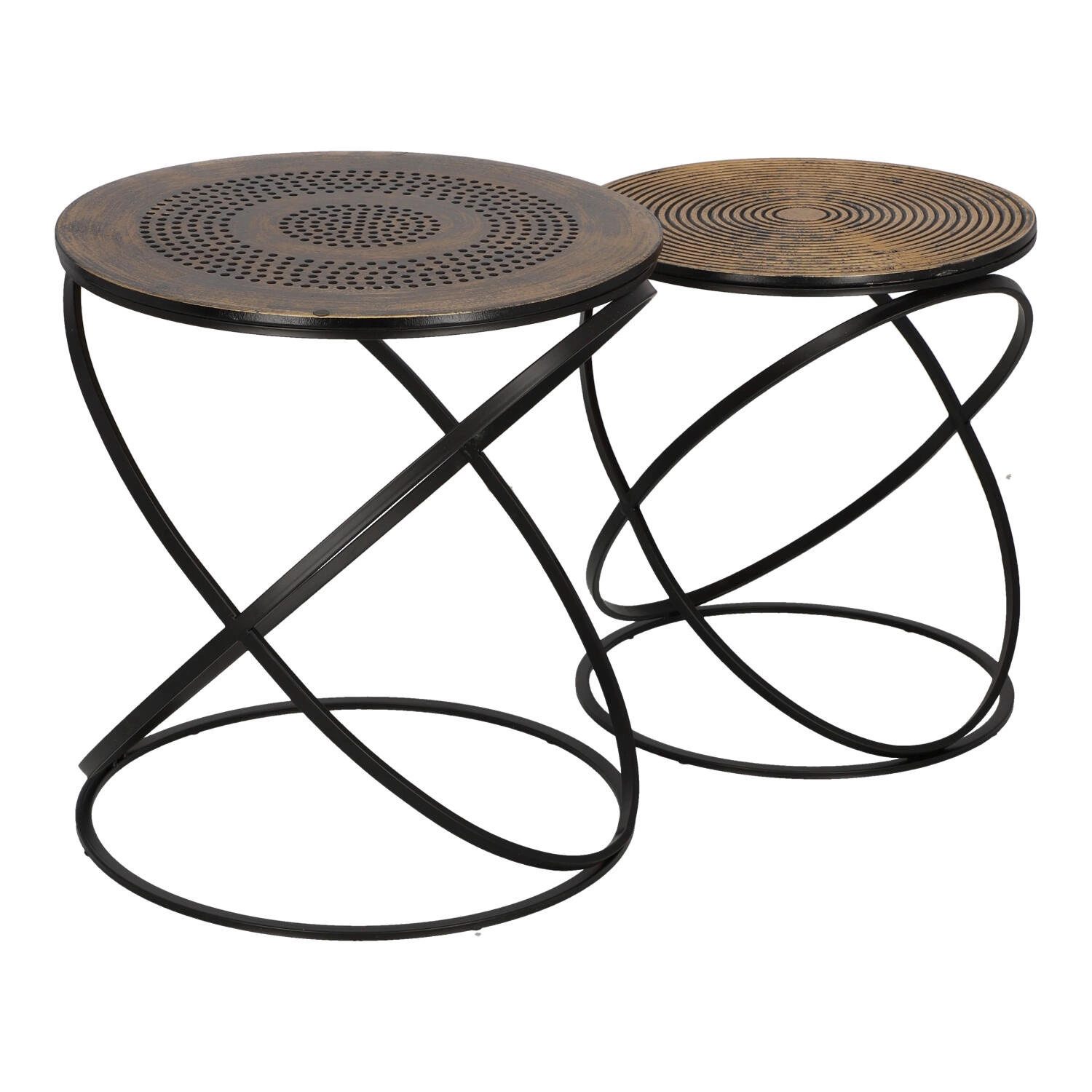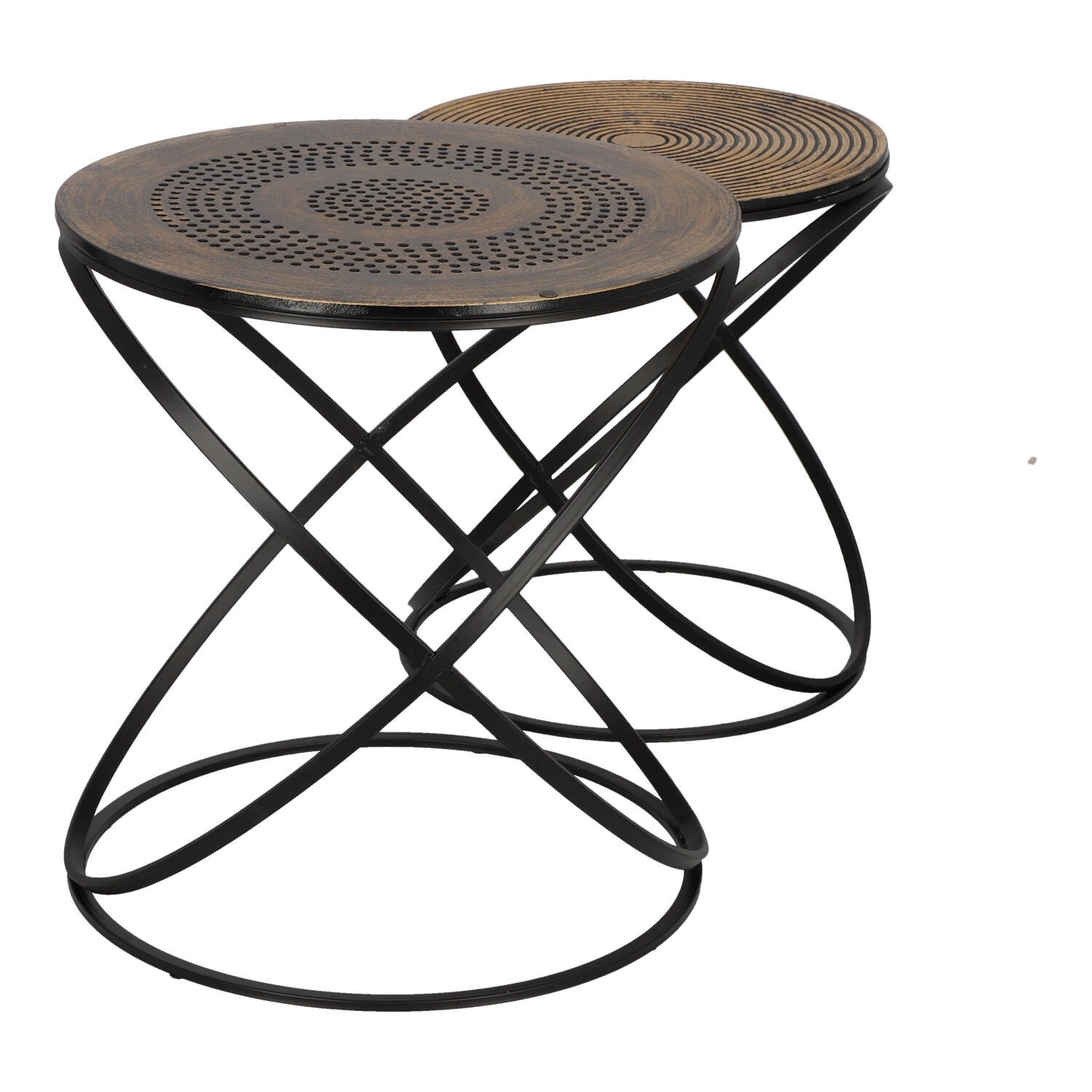 Zestaw 2 okrągłych stolików kawowych Etnik loft złoty czarny do salonu Atmosphera – elegancki akcent do nowoczesnych wnętrz