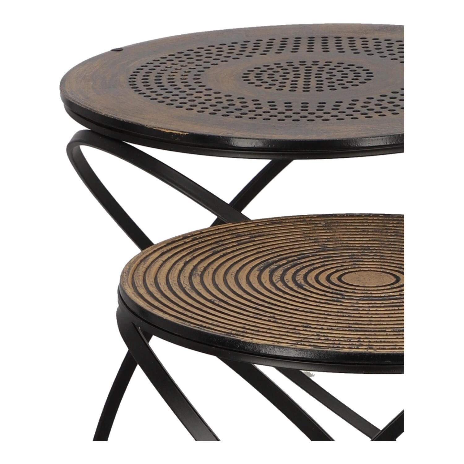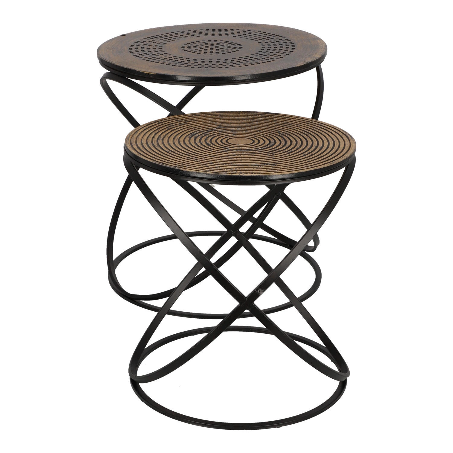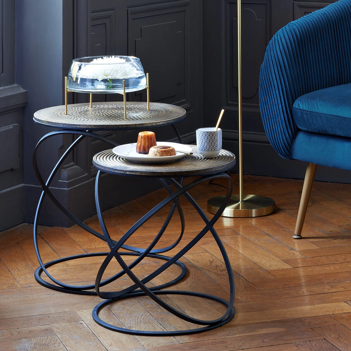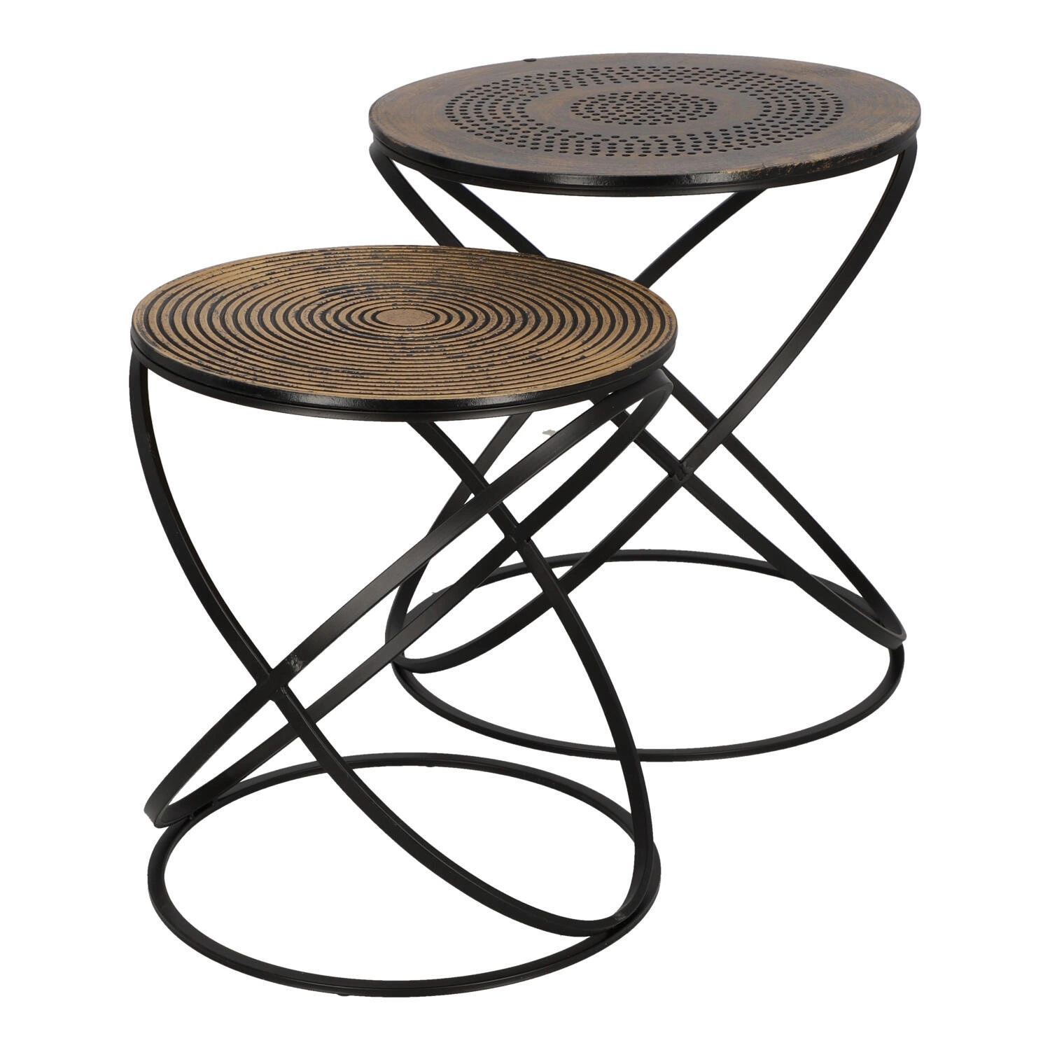 Zestaw 2 okrągłych stolików kawowych Etnik loft złoty czarny do salonu Atmosphera – elegancki akcent do nowoczesnych wnętrz
