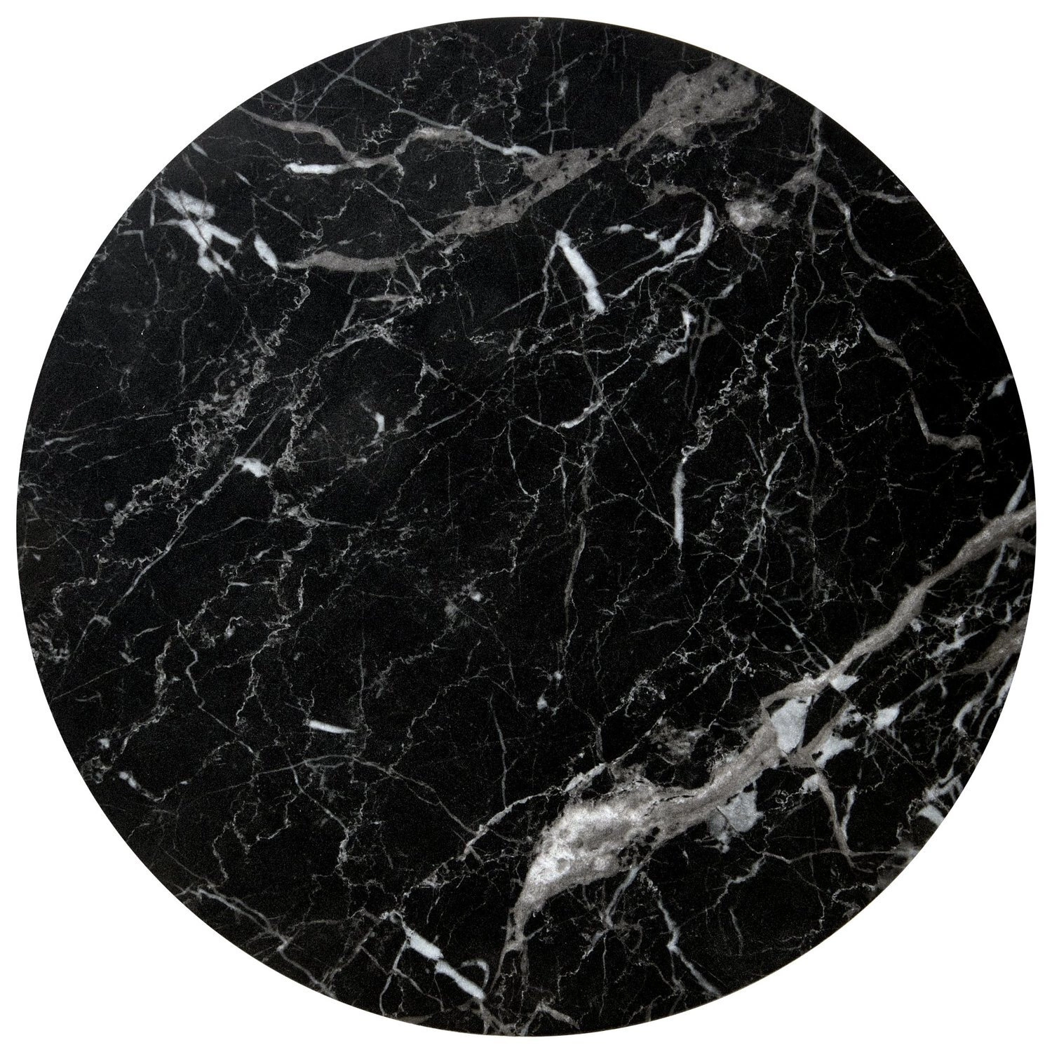 Zestaw dwóch okrągłych stolików Tabarka w kolorze czarnego marmuru i czarnym stelażu to wyjątkowe połączenie elegancji i funkcjonalności. Stoliki, wykonane z MDF okleinowanego i stali malowanej proszkowo, są niezwykle wytrzymałe i odporne na uszkodzenia. Blat stolika ma wyjątkowy wzór marmuru, który doda klasy każdemu wnętrzu, a czarny metalowy stelaż zapewnia stabilność i trwałość.