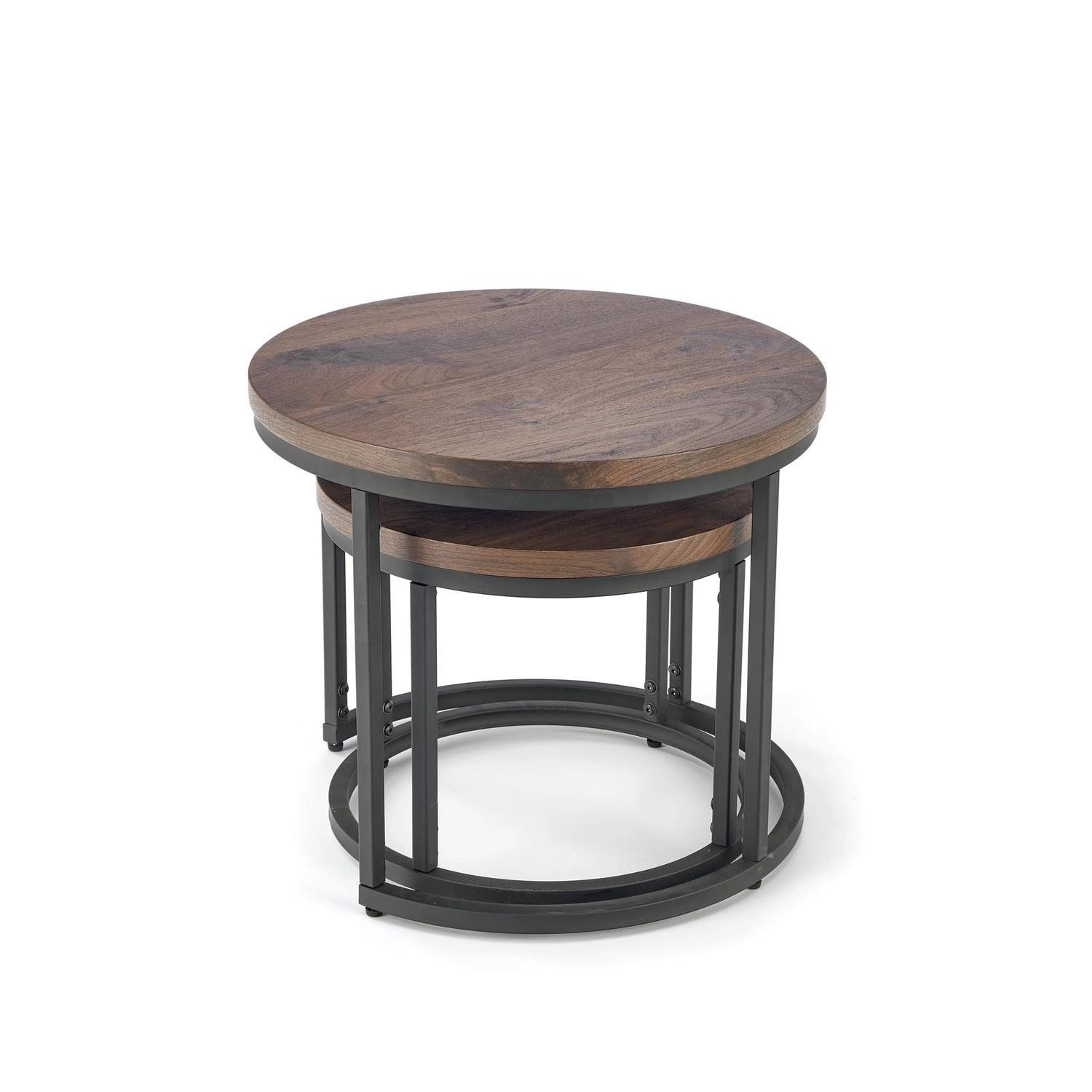 Stwórz idealne warunki do rozrywki w domu dzięki temu nowoczesnemu zestawowi 2 stolików Tabarka w stylu loftowym. Malowane proszkowo stalowe ramy i naturalne orzechowe blaty z fornirowanej płyty MDF dodadzą śmiałości Twojej przestrzeni życiowej.