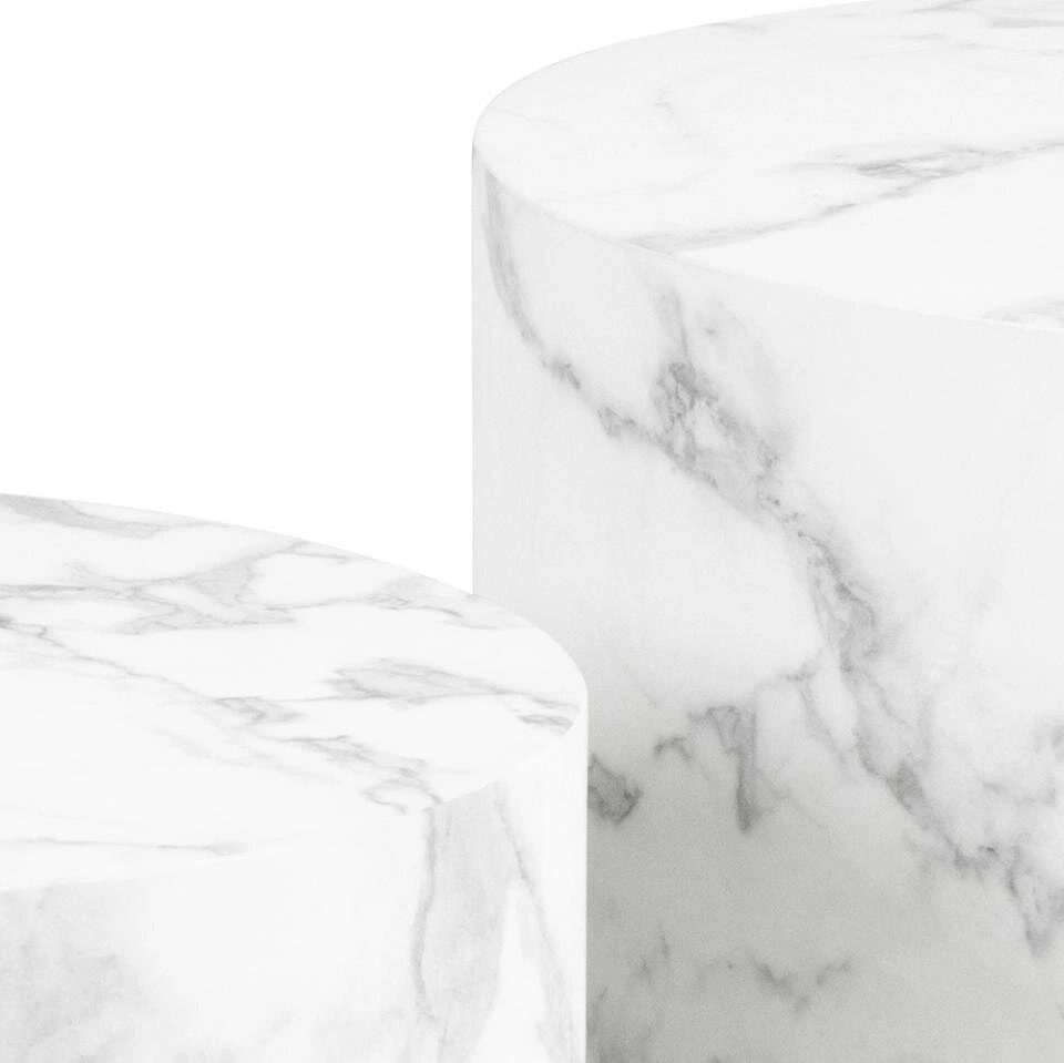 Zestaw 2 stolików Dice okrągłe marmur biały – elegancja i funkcjonalność w jednym