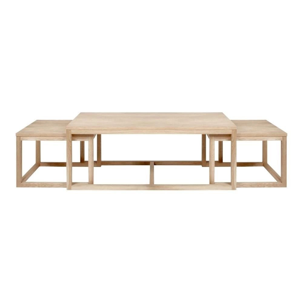 Zestaw stolików Cornus składa się z trzech stolików zrobionych z bielonego forniru dębowego. Głównym elementem jest jeden duży stolik, pod który możemy chować dwa mniejsze stoliki. Wszystkie elementy stolików zostały zrobione z drewna. Stoliki są olejowane, dzięki czemu podkreślone zostały słoje drewna. Wymiary stolików: Większy: 120cm x 60cm x 50cm, Mniejsze stoliki: 56cm x 51,5 cm x 44cm Waga: 33 kg.