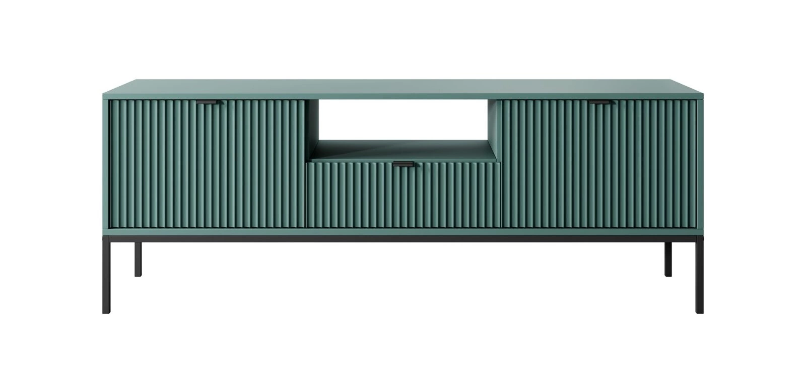 - Szafka RTV Delicious ryflowana zielona czarne uchwyty