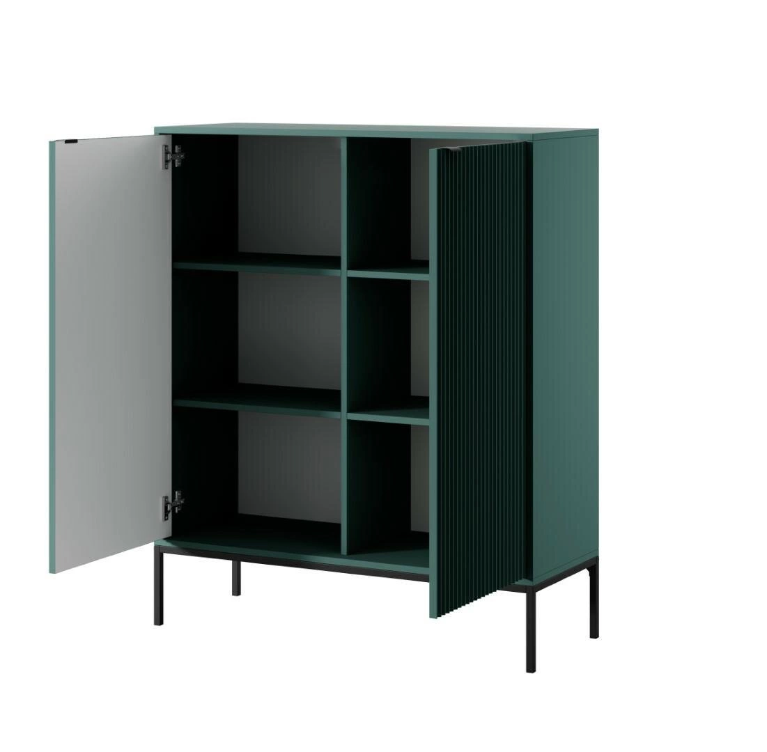- Komoda Delicious wysoka ryflowana zielona czarne uchwyty