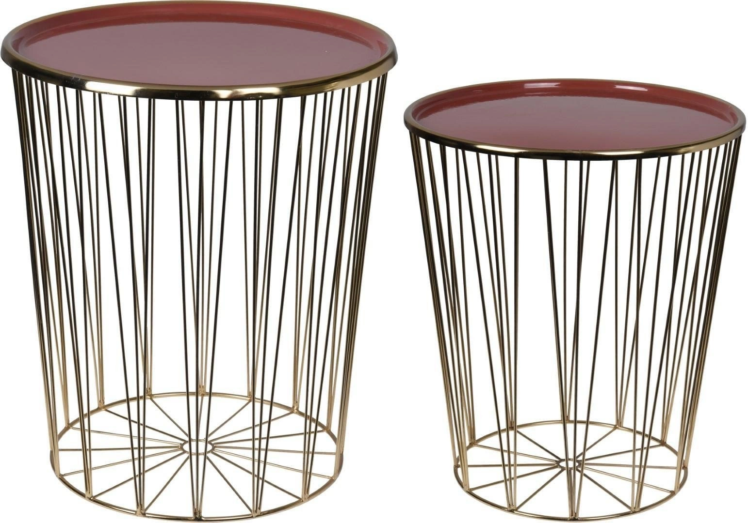 Bardzo modny zestaw Fidelity to eleganckie stoliki w stylu glamour. Blaty stolików zostały zrobione z metalowych tac polakierowanych na kolor ciemnego karmelu. Podstawą stolików są metalowe kosze pomalowane na kolor złoty. Dzięki efektownym wzorom koszyków całość wygląda elegancko. W skłąd zestawu wchodzą dwa stoliki. To propozycja dla osób ceniących oryginalne i niebanalne przedmioty. Prezentowany model doskonale odnajdzie się w salonie jako miejsce do odłożenia ulubionej herbaty, czy książki. Dzięki pustej podstawie możemy tam umieścić dowolne przedmioty i stworzyć oryginalna aranżacje, np. nietypowy gazetnik.
