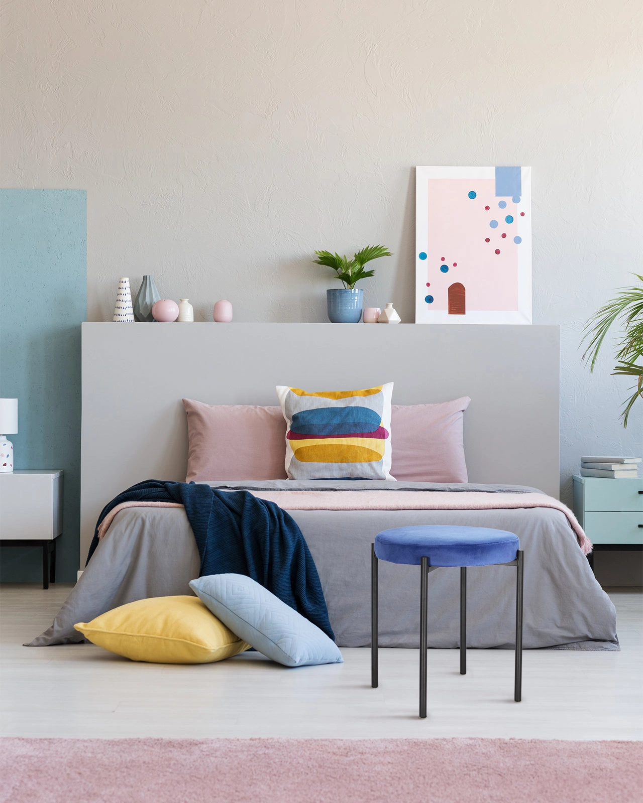 Stołek Madona VIC to propozycja do wnętrz w stylu glamour, loft lub nowoczesnym. Niewielki stołek odnajdzie swoje miejsce w sypialni, salonie lub przedpokoju, gdzie pomoże Ci i ułatwi wykonywanie codziennych czynności. Dzięki funkcji sztaplowania będziesz w stanie przechowywać je w dużej ilości, nie zajmując przy tym zbyt wiele miejsca. Oprócz praktyczności, Madona VIC ma do zaoferowania niezwykle gustowny design. Taboret został obity przyjemną w dotyku welwetową tkaniną, dostępną w dwóch kolorach: czarnym, niebieskim oraz szarym. Podstawa to natomiast 4 zgrabne, ale stabilne metalowe nóżki malowane na odcień głębokiej czerni, która wygląda fenomenalnie w połączeniu z welwetowym siedziskiem w kształcie koła.