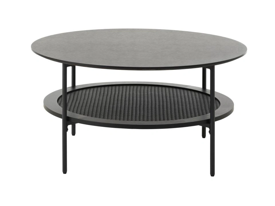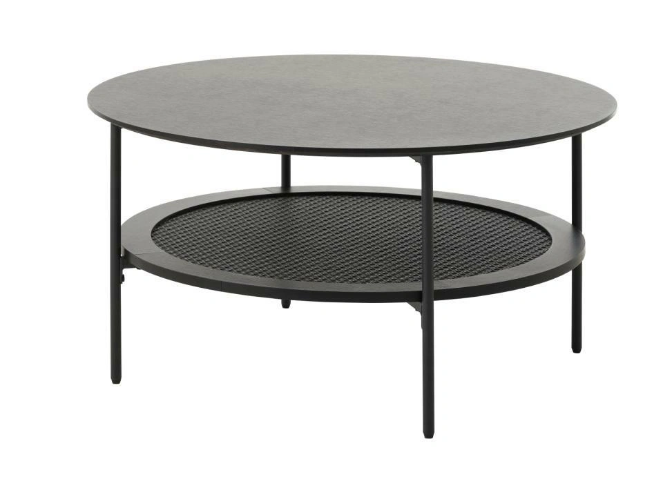 Ten nowoczesny stolik kawowy został zaprojektowany tak, aby maksymalnie wykorzystać przestrzeń. Pod blatem znajduje się dekoracyjna półka z ramą z płyty i wypełnieniem z rattanu syntetycznego, która pełni funkcję praktycznego schowka. Możesz odłożyć tam piloty, książki, laptop czy gazetę, dzięki czemu na górnym blacie zawsze zostanie miejsce na filiżankę kawy lub tacę z przekąskami. Pensacola świetnie sprawdzi się także jako stolik boczny lub stolik pomocniczy obok fotela – stworzysz wygodny kącik do czytania lub pracy w domowym biurze.- Średnica blatu 80 cm – zyskujesz komfortowy stolik kawowy do salonu, przy którym swobodnie odłożysz wszystko, co potrzebne podczas spotkań z rodziną i przyjaciółmi.