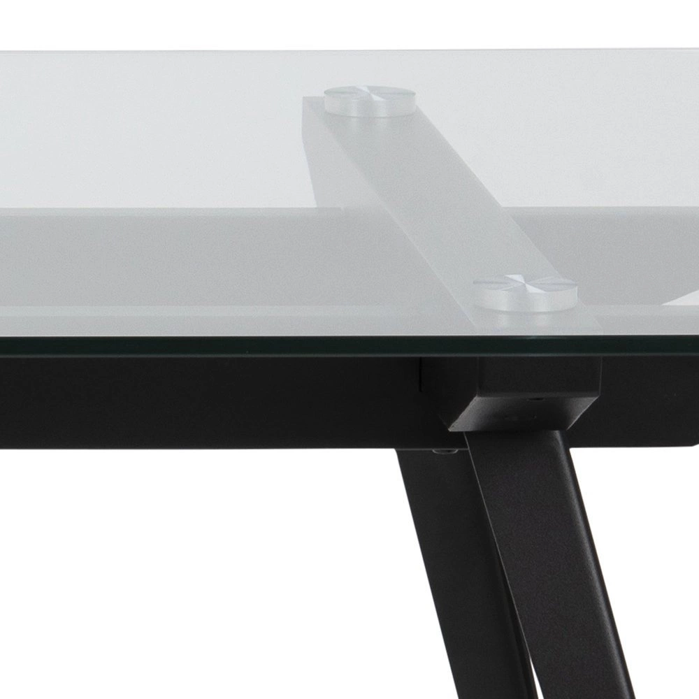 Nowoczesny stolik Monti o oryginalnej konstrukcji będzie eleganckim dodatkiem do każdego wnętrza. Podstawa stolika wykonana jest ze stali polakierowanej na czarno. Zwężające się ku dołowi nogi są dość szeroko rozstawione. U góry nogi połączone są czterema belkami, z których dwie są ułożone ukośnie i mają ścięte końce. Kształt konstrukcji nadaje stołowi orientalnego charakteru. Blat stołu wykonany jest z hartowanego szkła i podpierają go cztery okrągłe metalowe podkładki widoczne przez szybę. Formalny stół znakomity do części jadalnianej w salonie lub nowoczesnej kuchni.