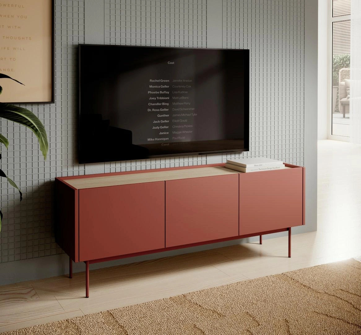Mebel został stworzony z myślą o prostocie formy i używania. Przechowywanie w trzech frontach, zapewnia dużo miejsca na różne urządzenia czy płyty. Korpus i fronty wykonane są z płyty, a dodatkowe obrzeże ABS nadaje im trwałość i elegancję. Szafka RTV Cashmer posiada metalowe nogi o wysokości 20cm, która dodaje mu lekkości i subtelności. System otwierania poprzez wysuniętą krawędź oraz zawias puszkowy FI 35 na prowadniku clip on, dzięki czemu korzystanie jest niezwykle wygodne i wygodne. Maksymalne obciążenie blatu wynosi 30 kg. Szafka RTV jest elementem kolekcji mebli Cashmer, dzięki czemu możesz stworzyć spójne wnętrze.
