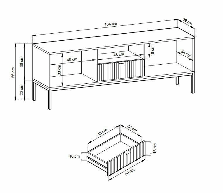- Przestronna szafka o szerokości 154 cm i głębokości 39 cm zapewnia mnóstwo miejsca do przechowywania konsol do gier, dekoderów itp.