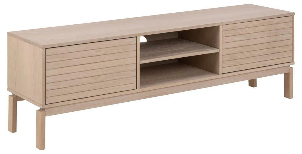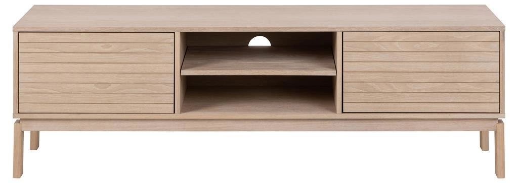 Szafka RTV Linley to mebel, który swoim harmonijnym wzornictwem subtelnie wkomponuje się w Twoje wnętrze. Wykonana z dębu olejowanego o pięknym, bielonym odcieniu, ta szafka pod telewizor dodaje elegancji i uroku każdemu pomieszczeniu. Jej lamelowe fronty nadają unikalny wygląd, który zachwyca i wyróżnia się spośród innych mebli.