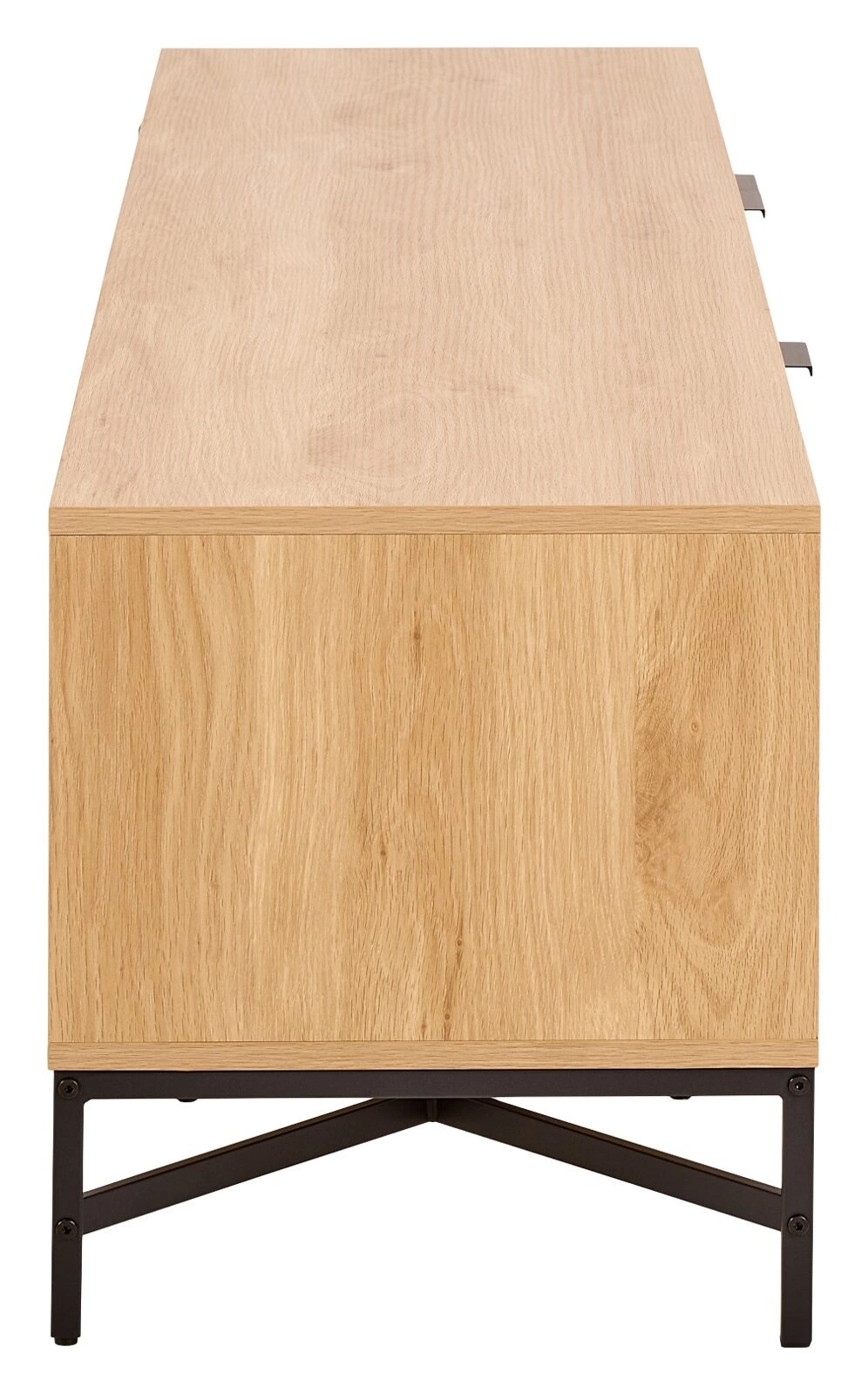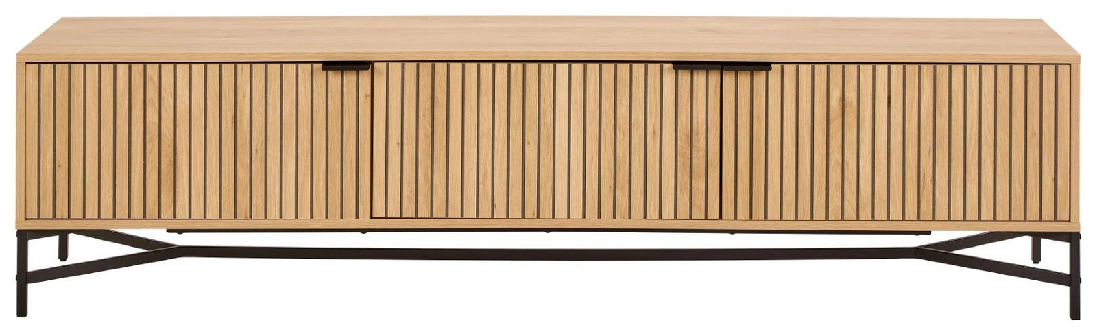 Przedstawiamy Szafkę RTV Jaipur - mebel o niepowtarzalnym, minimalistycznym designie, który idealnie wkomponuje się w nowoczesne wnętrza. Wykonana z płyty MDF oklejonej fornirem dębowym, posiada unikalny, listwowy front. Szafka jest nie tylko praktyczna, ale i estetycznie wykonana, dzięki czemu stanie się prawdziwą ozdobą Twojego salonu, sypialni, przedpokoju, pokoju młodzieżowego czy gabinetu.