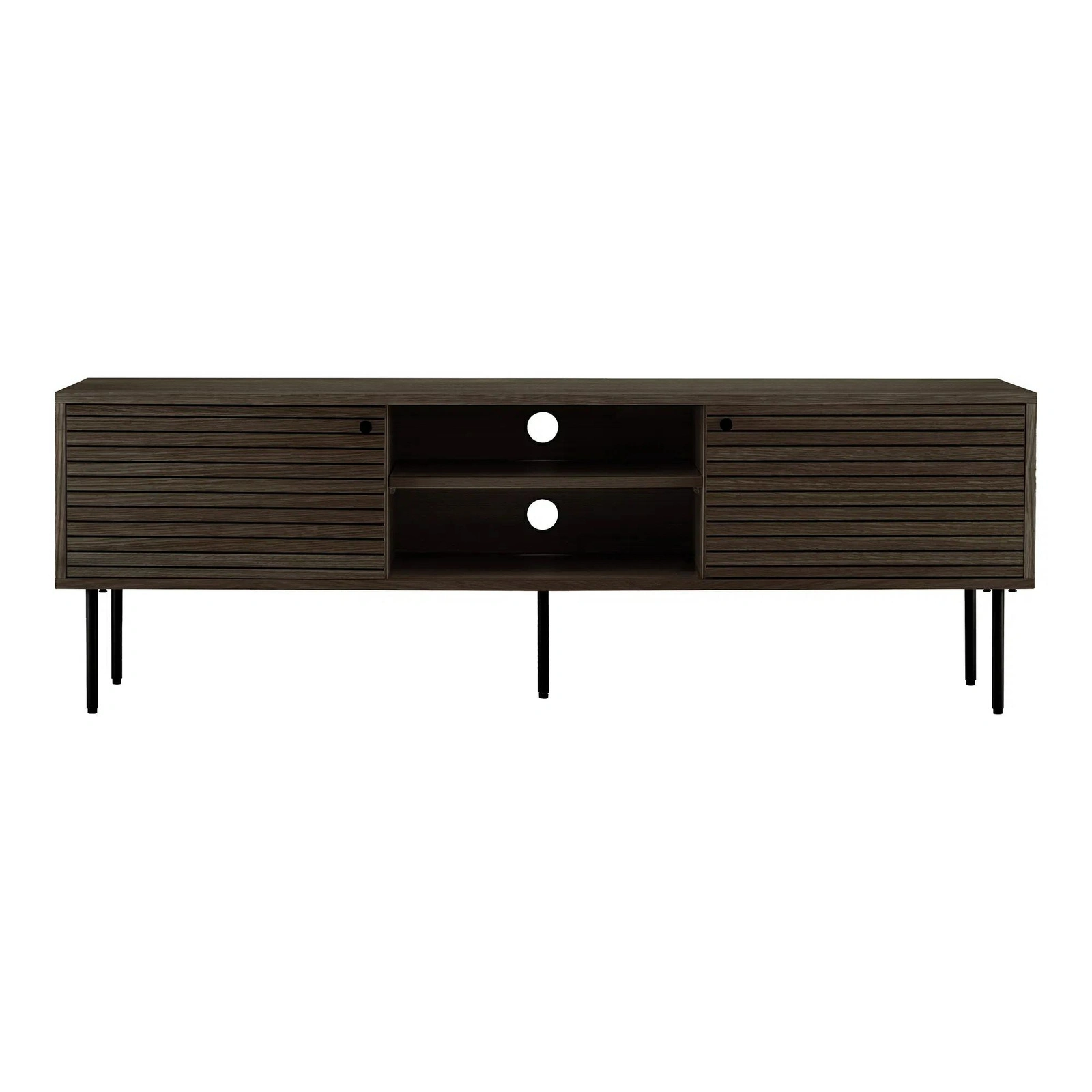 - Dwie otwarte półki – idealne miejsce na dekoder, konsolę czy router, z łatwym dostępem do urządzeń.