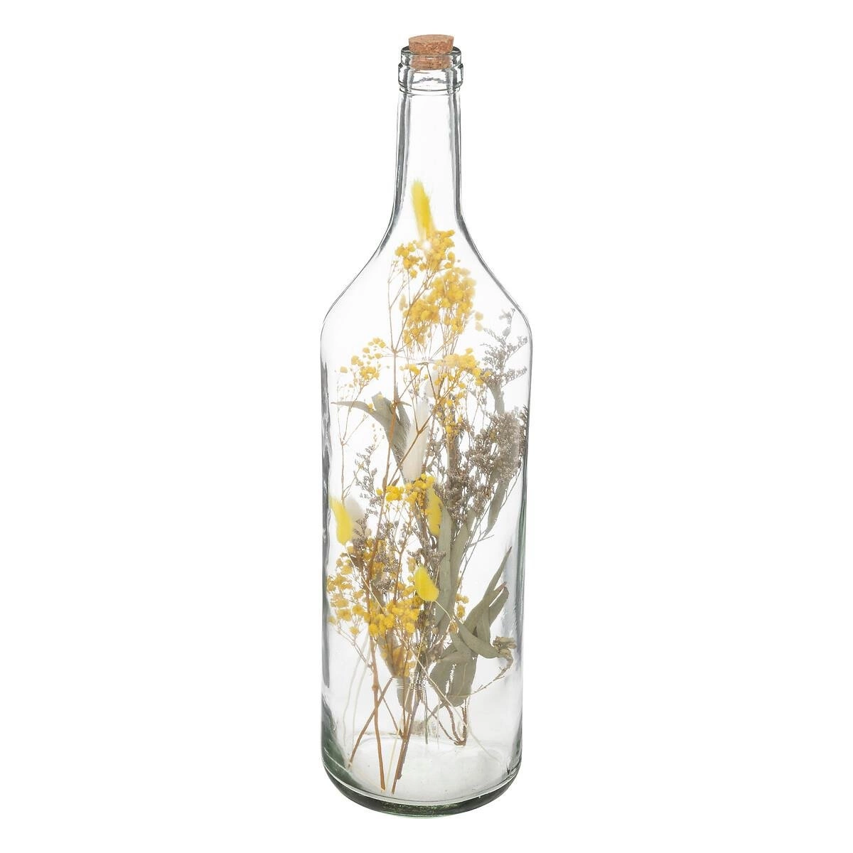 Dekoracja w postaci szklanej butelki z naturalnymi suszonymi roślinami to dekoracja w stylu boho, która doda odrobinę artyzmu i harmonii. Ciekawe kolory i kształty współgrają ze sobą tworząc interesującą kompozycję.