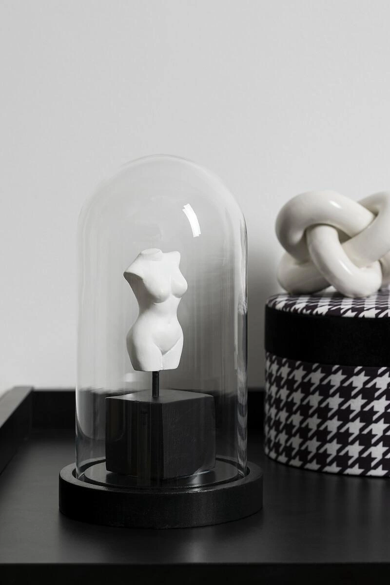 Przedstawiamy dekorację, która jest idealnym dodatkiem do każdego domu! Uderzający projekt z tworzywa sztucznego, zamknięty pod kloszem ze szkła, sprawia, że figurka natychmiast przyciąga wzrok - wprowadzając luksusowy klimat glam. Wykonany z wysokiej jakości materiałów - w tym tworzywa sztucznego, trwałej płyty MDF i przepięknego polerowanego szkła - będziesz mógł cieszyć się tym szykownym ornamentem przez lata.