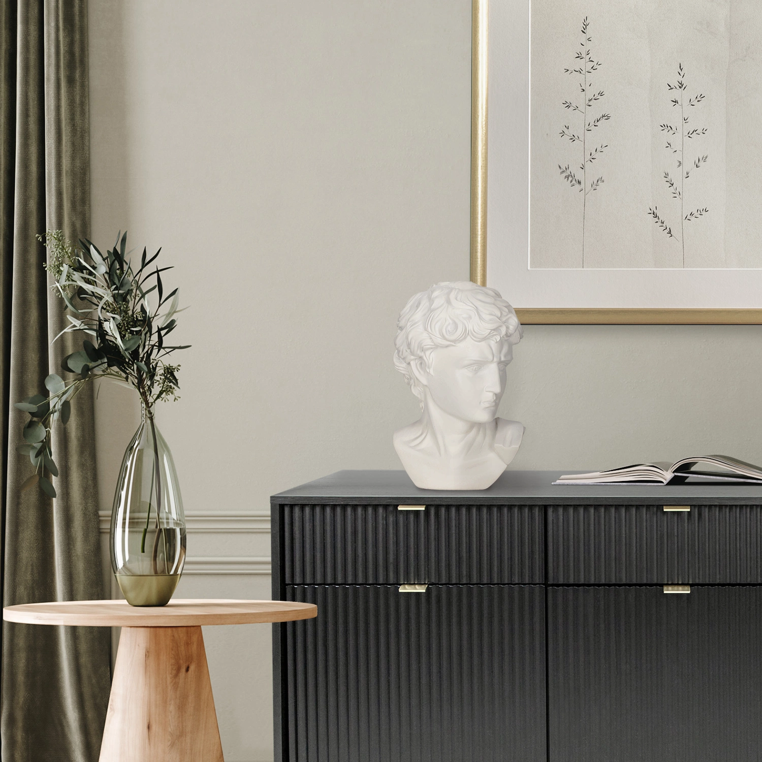 Inspiracja antyczną rzeźbą połączona z minimalistycznym designem sprawia, że głowa Dawida to prawdziwa perełka wśród figurek dekoracyjnych. Wysokość 25 cm oraz proporcjonalne wymiary (szerokość 16 cm, głębokość 15 cm) czynią ją idealną zarówno na komodę, jak i na półkę czy konsolę. Biała figurka dekoracyjna pięknie odbija światło i dodaje wnętrzu wizualnej lekkości, podkreślając nowoczesny charakter przestrzeni. To nie tylko ozdoba, ale również wyraz artystycznego smaku i indywidualności domowników.