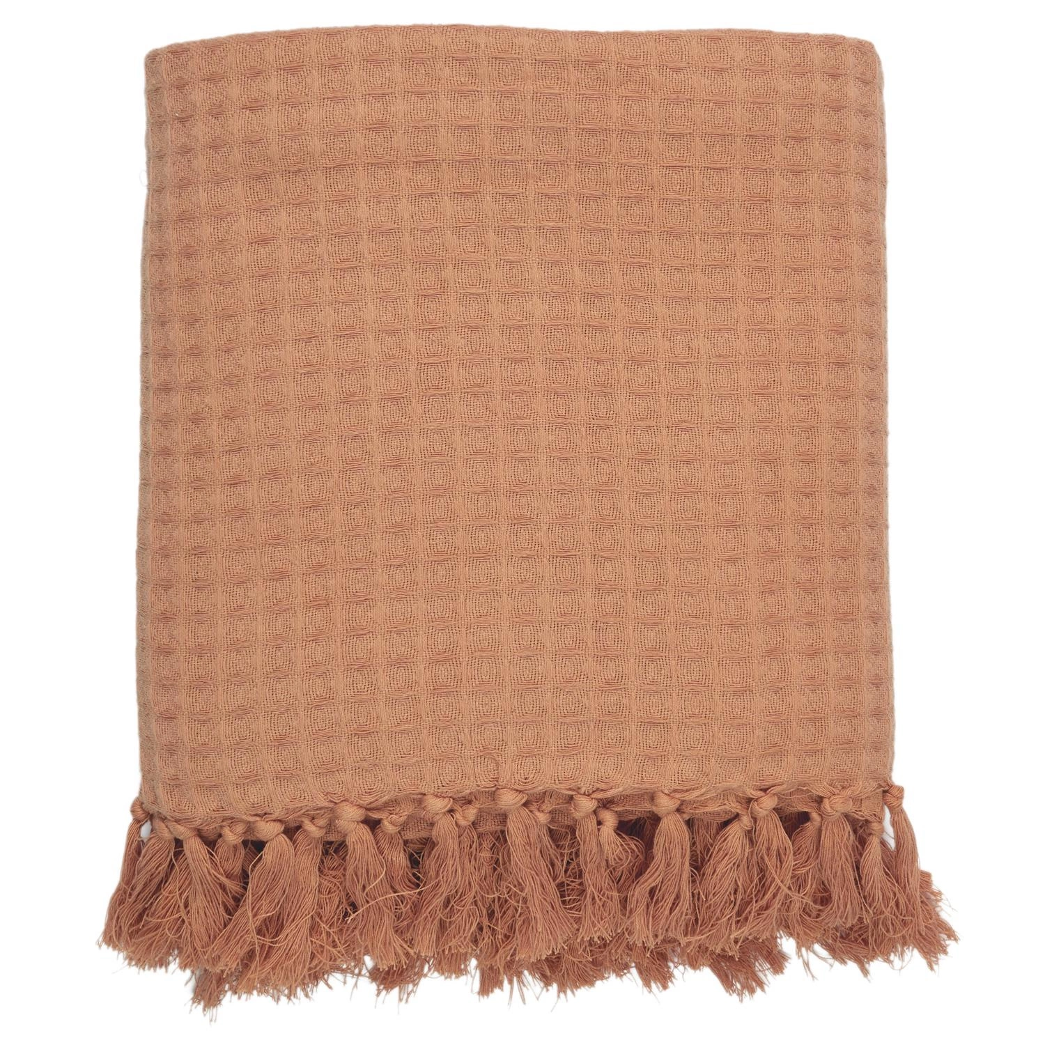 Koc bawełniany Waffle Intesi ochra 150x200 cm to wyjątkowy pled, który zachwyca naturalnym materiałem, dużym rozmiarem i modnym, głębokim odcieniem pomarańczowym. Wykonany z miękkiej bawełny, doskonale sprawdzi się jako ciepły koc na kanapę lub łóżko, zapewniając komfort i styl w każdym wnętrzu. Wyrazista struktura wafla oraz prostokątny kształt czynią z niego nie tylko praktyczny, ale i dekoracyjny dodatek do salonu, sypialni czy pokoju dziecięcego.