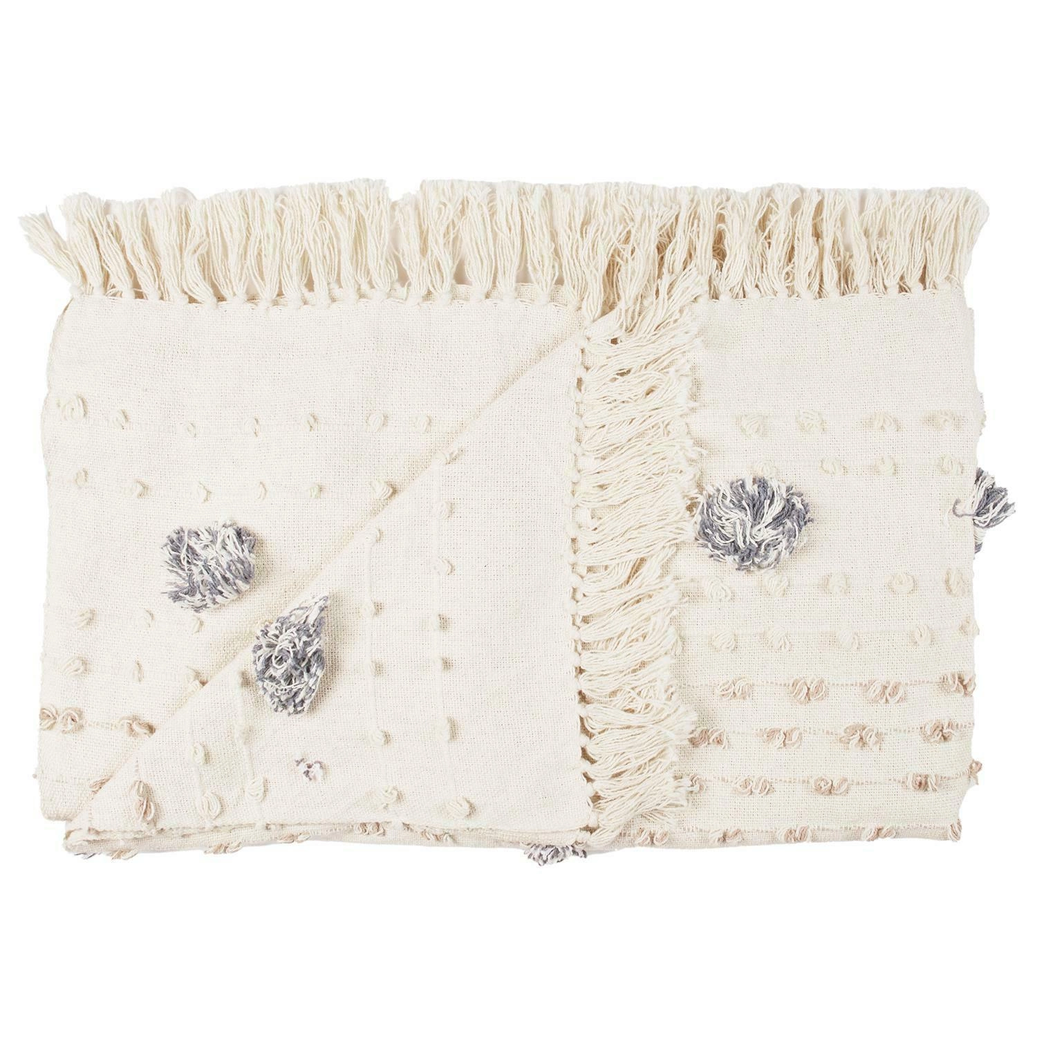 Jego kremowy kolor dodaje elegancji i pasuje do każdego wystroju wnętrza. Ozdobiony frędzelkami na brzegach oraz pomponami w granatowo-szarym kolorze, ten koc w stylu boho stanie się nie tylko praktycznym nakryciem na zimowe wieczory, ale również piękną ozdobą na Twojej sofie lub fotelu. Koc Tuffo to nie tylko funkcjonalny przedmiot, ale także wyraz Twojego stylu i gustu. Jego uniwersalny design sprawia, że pasuje do różnych pomieszczeń – od salonu, przez sypialnię, po pokój dziecięcy. Możesz go również zabrać na piknik lub używać na tarasie, aby cieszyć się przyjemnymi chwilami na świeżym powietrzu.