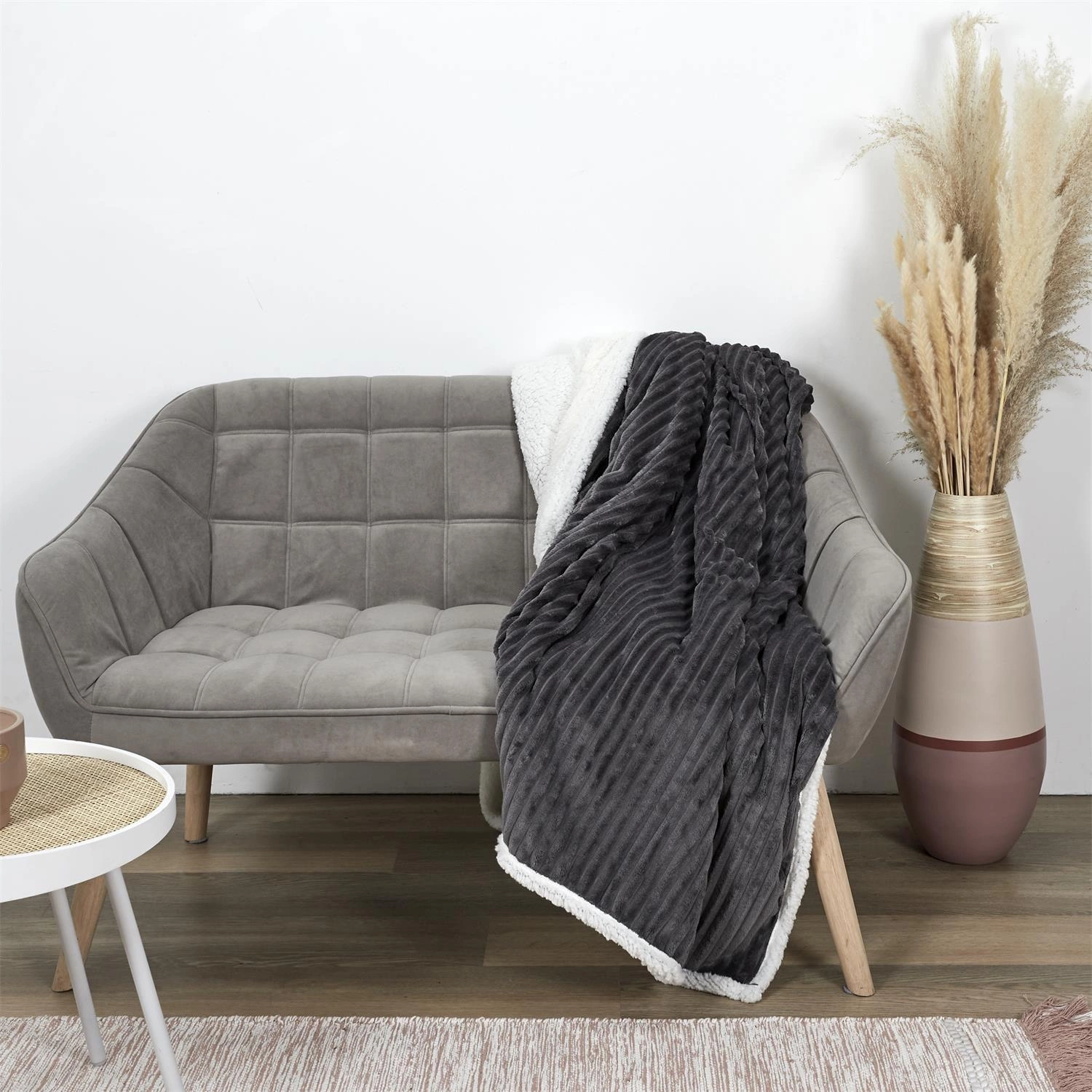 Koc Sherpa Intesi ciepły i miękki szary 180x220 na łóżko i kanapę do salonu