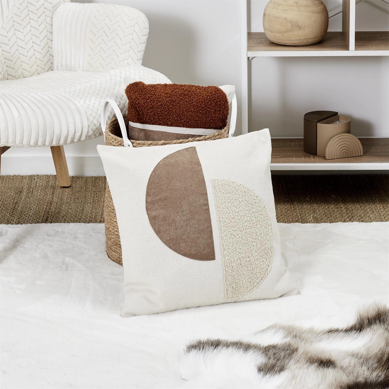 Poduszka dekoracyjna Japandi 40x40 marki Intesi to harmonijne połączenie minimalistycznej estetyki z funkcjonalnością. Kwadratowy kształt, uniwersalny beżowy kolor i subtelny wzór w koła sprawiają, że poduszka doskonale podkreśli styl salonu lub sypialni. Wykonana z przyjemnej w dotyku tkaniny poliestrowej, z miękkim wypełnieniem, stanowi nie tylko ozdobę, ale również wygodne wsparcie podczas relaksu.
