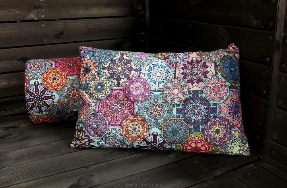 Multikolorowa poduszka VALENCIA przyciąga wzrok intensywnością barw i oryginalnym wzorem, idealnie wpisując się w nowoczesne aranżacje wnętrz. Wyrazista kolorystyka pozwala nie tylko ożywić stonowane wnętrze, ale też łatwo odmienić charakter kanapy czy łóżka bez konieczności kosztownych remontów. Welurowa tkanina subtelnie odbija światło, dodając całości elegancji i głębi.