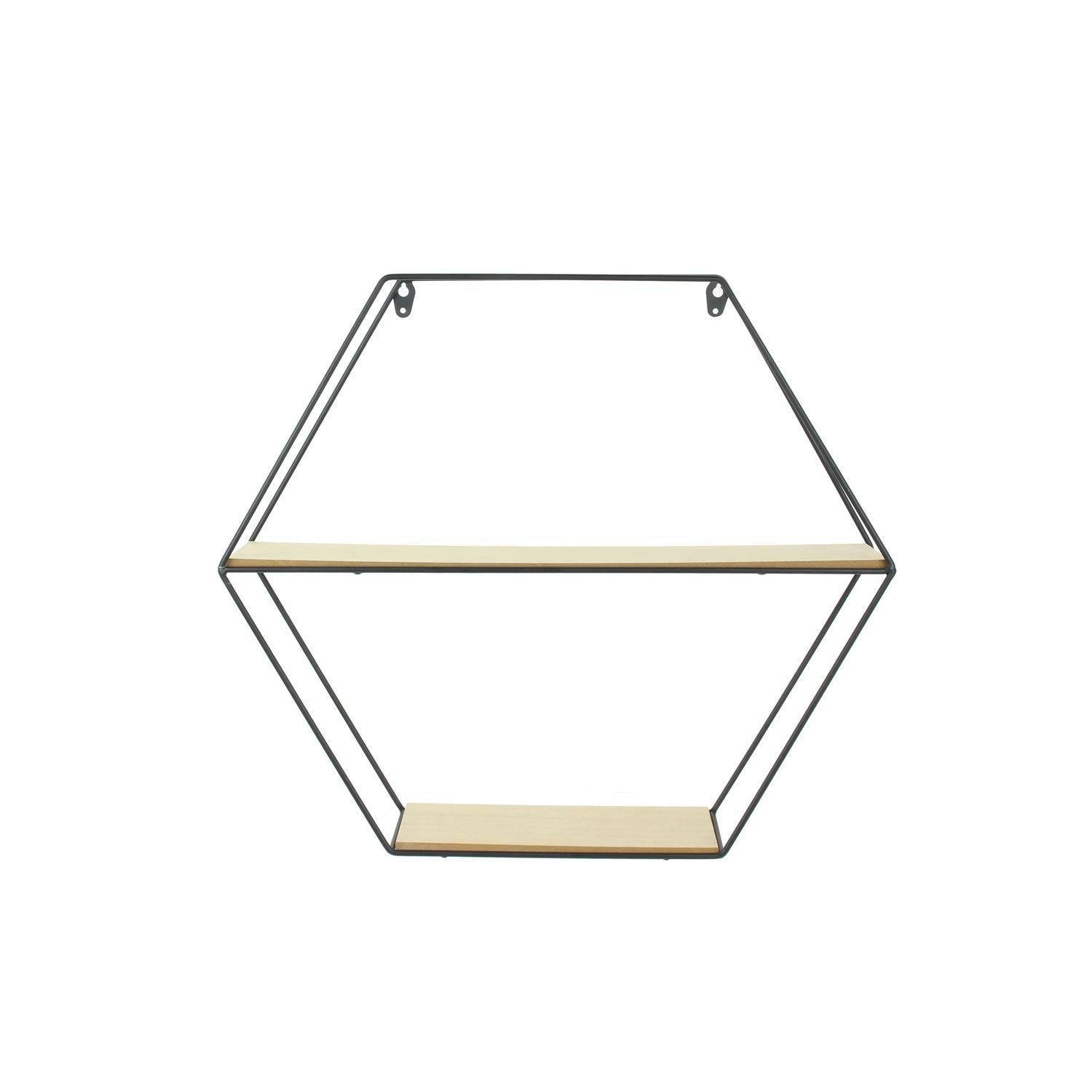 Półka Heksagon jest niezwykle uniwersalnym dodatkiem do wnętrz. Idealnie wkomponuje się w każdym wnętrzu od vintage, glamour po wnętrza nowoczesne. Półka jest minimalistyczna o modnym heksagonalnym kształcie. Metalowa rama pomalowana na czarno utrzymuje dwie jasne półki z płyty MDF. Budowa półki jest bardzo ciekawa, a nowoczesny kształt podkreśli i uzupełni nowoczesne wnętrze. Jest niezwykle praktyczna i stabilna.
