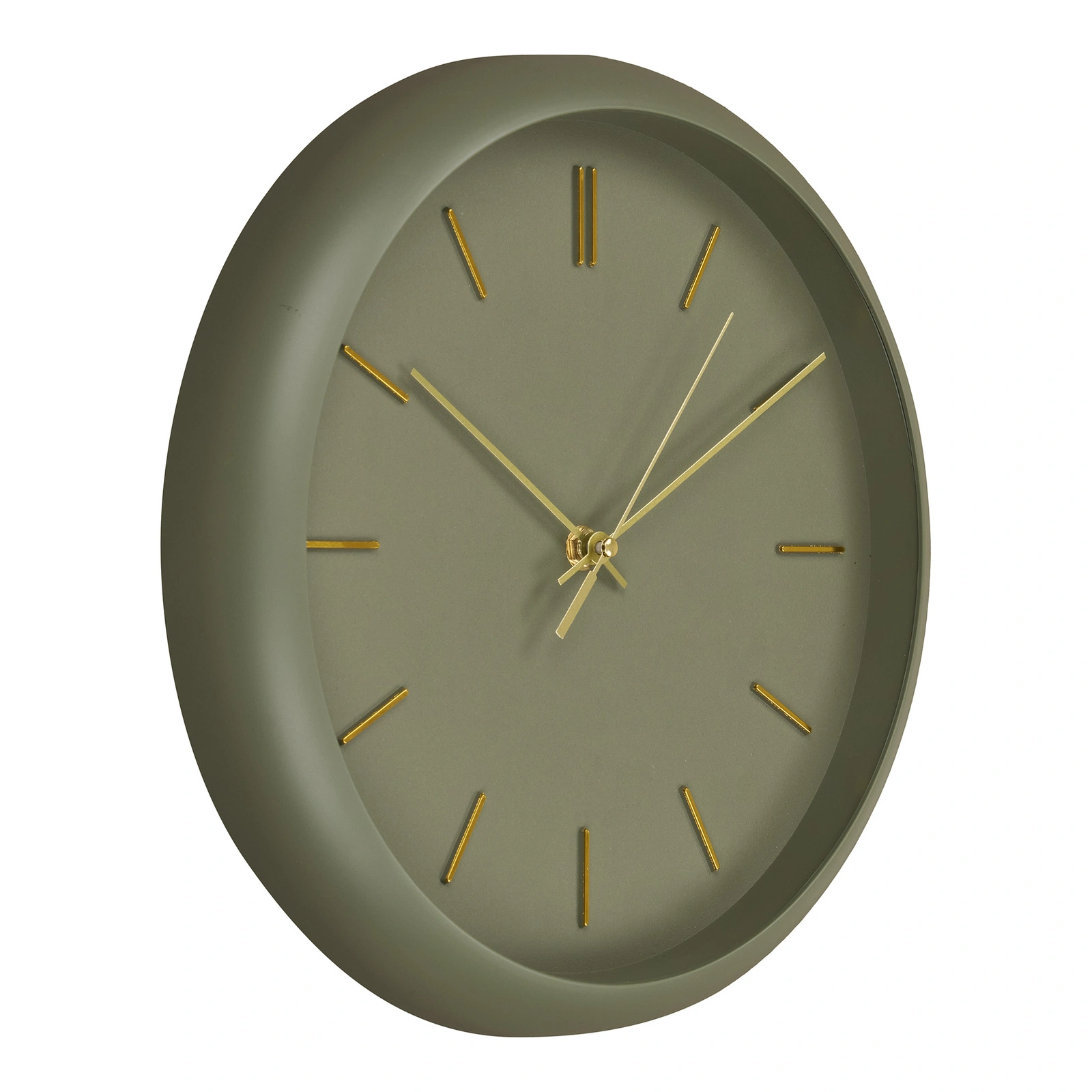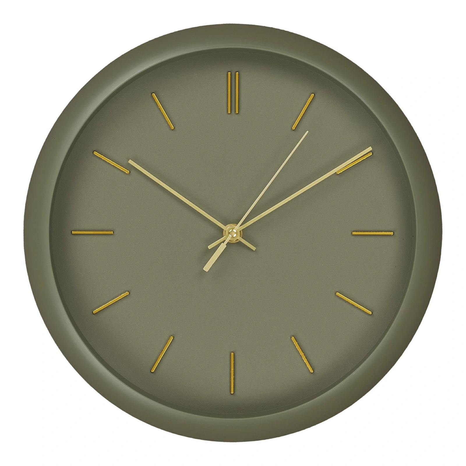 Delikatnie zielona tarcza zegara Rossano wprowadza do wnętrza spokój i elegancję. Okrągły kształt o średnicy 30 cm tworzy wyraźny, ale nienachalny akcent na ścianie, który pasuje zarówno nad sofę, stół w jadalni, jak i do przedpokoju. To idealny wybór, jeśli szukasz zegara ściennego, który jednocześnie odmierza czas i pełni funkcję dekoracji.