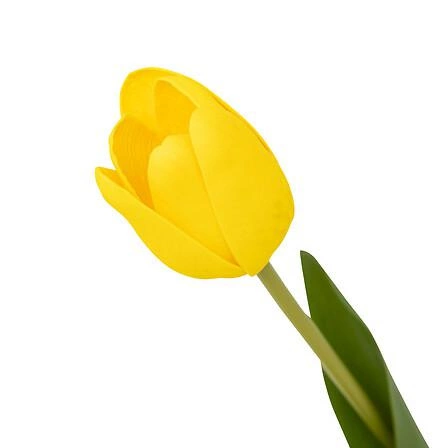 Nowoczesny wygląd sztucznego tulipana żółtego pozwala łatwo dopasować go do każdego stylu wnętrza – od minimalistycznego salonu, przez przytulną sypialnię, aż po eleganckie biuro. Smukła forma (wysokość 48 cm) sprawia, że świetnie prezentuje się zarówno solo, jak i w kompozycji bukietu sztucznych kwiatów. Ożywia przestrzeń i wprowadza do niej pozytywną energię, nie wymagając przy tym szczególnej opieki czy wymiany wody.