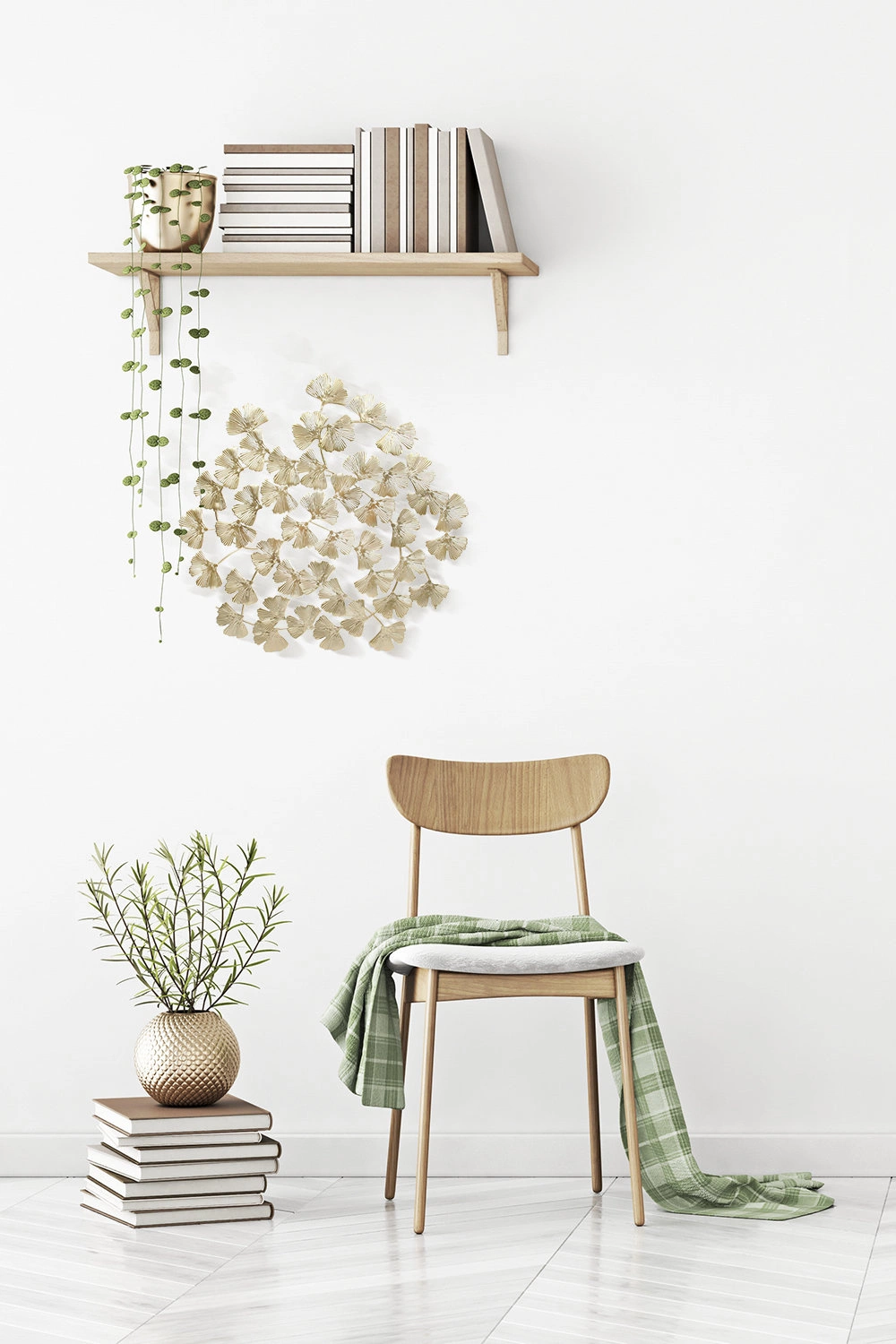 Ozdoba ścienna Miłorząb zachwyca subtelnym połyskiem złota, dzięki czemu wprowadza do wnętrza nutę luksusu i elegancji. Otwarta, lekka forma liścia sprawia, że dekoracja nie przytłacza przestrzeni, lecz harmonijnie dopełnia aranżację, odbijając światło i optycznie powiększając pomieszczenie. Efektowny design zainspirowany naturą przyciąga uwagę i staje się stylowym akcentem każdego wnętrza urządzonego w duchu glamour.