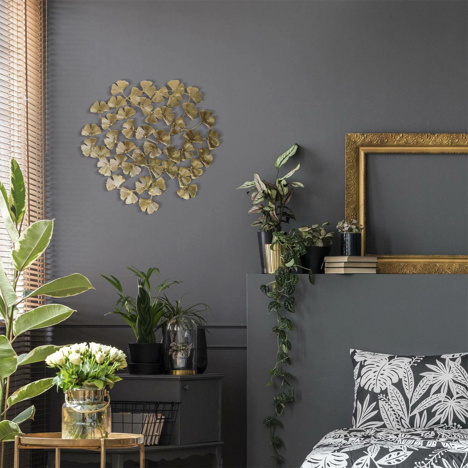 Złota dekoracja ścienna Miłorząb marki Intesi znakomicie sprawdzi się jako centralna ozdoba ścienna w salonie, elegancki akcent w sypialni czy stylowe uzupełnienie jadalni. Motyw liścia i połyskliwa powierzchnia doskonale komponują się z jasnymi ścianami i miękkimi tkaninami, tworząc spójną, przytulną atmosferę. To propozycja dla tych, którzy cenią sobie wyrafinowane dekoracje ścienne i chcą w prosty sposób odmienić wygląd swojego domu.