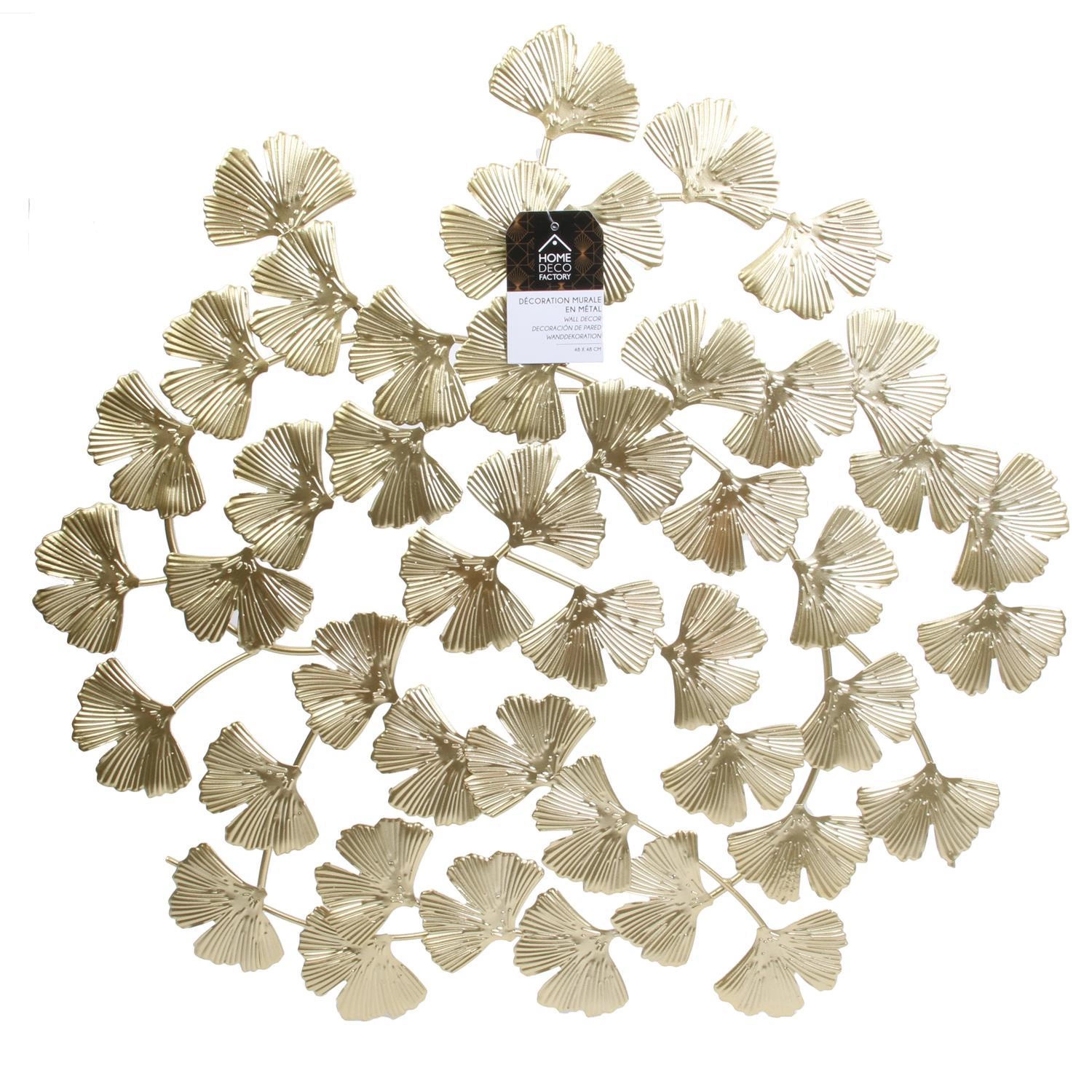 Złota metalowa dekoracja ścienna Miłorząb marki Intesi to elegancka ozdoba o wymiarach 48,5 × 48,5 cm, wykonana z trwałego metalu w lśniącym, złotym kolorze. Unikatowy motyw liścia miłorzębu nadaje całości wyrafinowanego charakteru, idealnie wpisując się w styl glamour. Ta dekoracja ścienna metalowa została zaprojektowana z myślą o efektownym podkreśleniu ścian w salonie, jadalni czy sypialni.