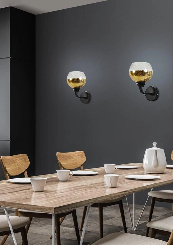 Kinkiet Cromina to wyjątkowe połączenie nowoczesności i elegancji. Jego klosz w dwóch kolorach - lustrzanym złocie na górze i transparentnym na dole - jest prawdziwym dziełem sztuki. Wyjątkowa faktura imitująca mikropęknięcia dodaje mu oryginalności, a chromowana podstawa dodaje elegancji. Ten kinkiet to nie tylko źródło światła, ale również niezwykła dekoracja, która przyciąga wzrok i dodaje pomieszczeniu charakteru.